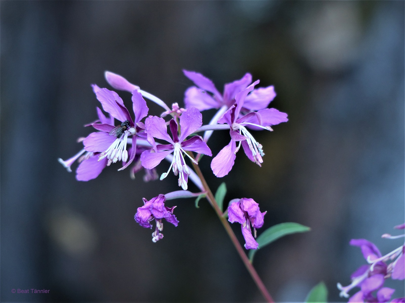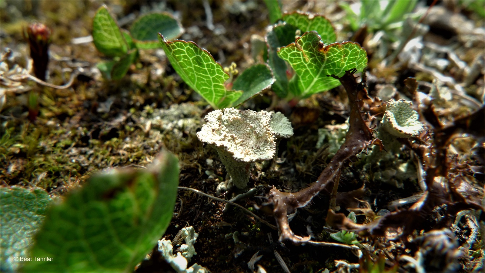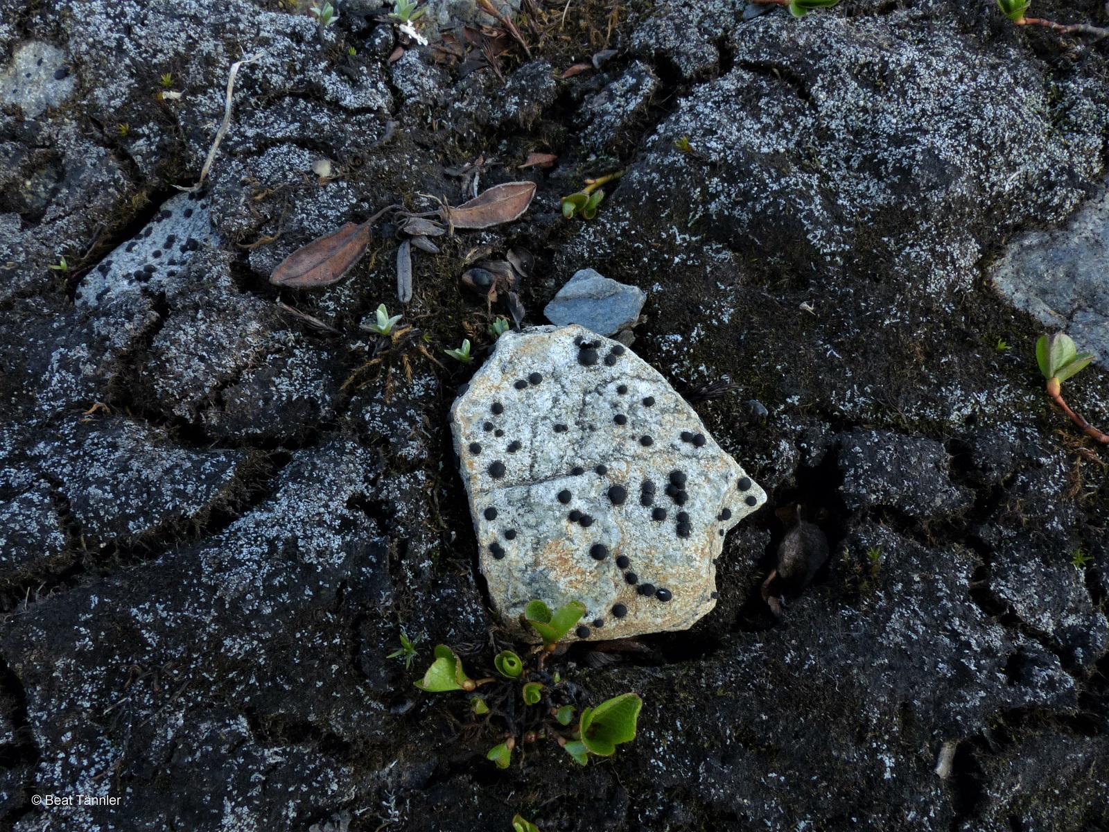 Kurz nach dem Dorf sammelten wir Heidelbeeren. Beat in Shorts und ohne T-Shirt wird von den Mücken und Knots (kleine fliegende Blutsauger) beinahe aufgefressen. Es war wieder um die 30 °C heiss. Annette fand zudem einige Pilze (Heiderotkappen) für das Abendessen.