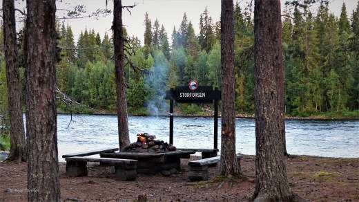 Etwas ausserhalb von Jokkmokk fanden wir in der Nähe eines Flusses „Lilla Lule Älv“ einen ruhigen Platz im Wald. Wie üblich mit Toilette, Entsorgungshäuschen und Feuerstelle mit Rost.