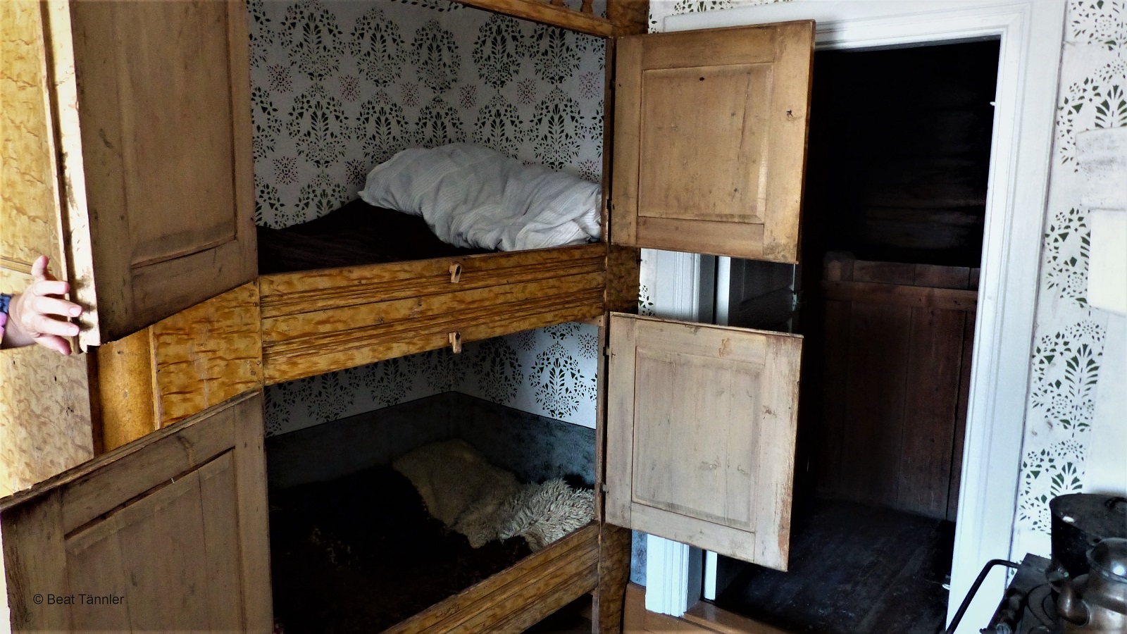 Kajütenbett von anno dazumal. Praktisch, wenn man unerwartet Besuch bekommt und das Bett noch nicht gemacht ist -> Türe zu.