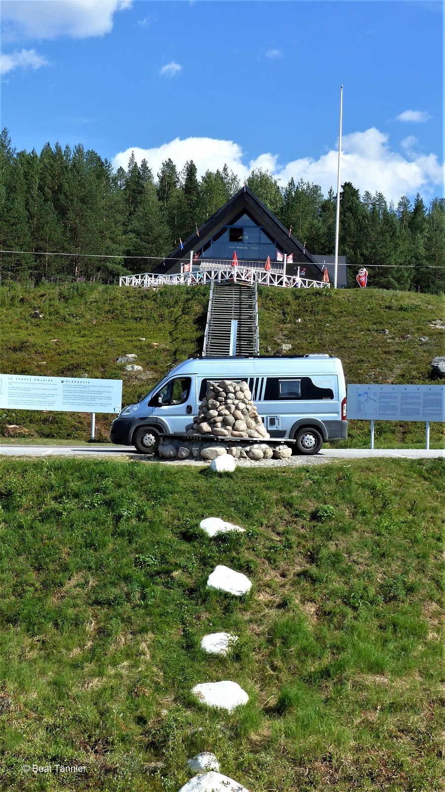 Auf dem Weg nach Jokkmokk überquerten wir den Polarkreis, der durch weisse Steine und dem Souvenirshop in der Verlängerung symbolisiert wird.
