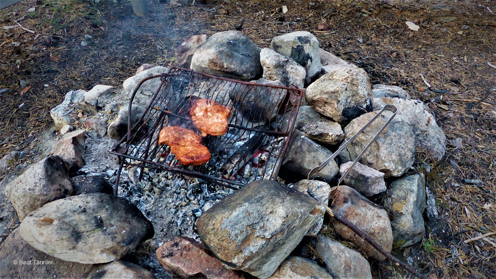 Nach diesem anstrengenden Tag gönnten wir uns ein feines Abendessen mit Steaks vom Grill.