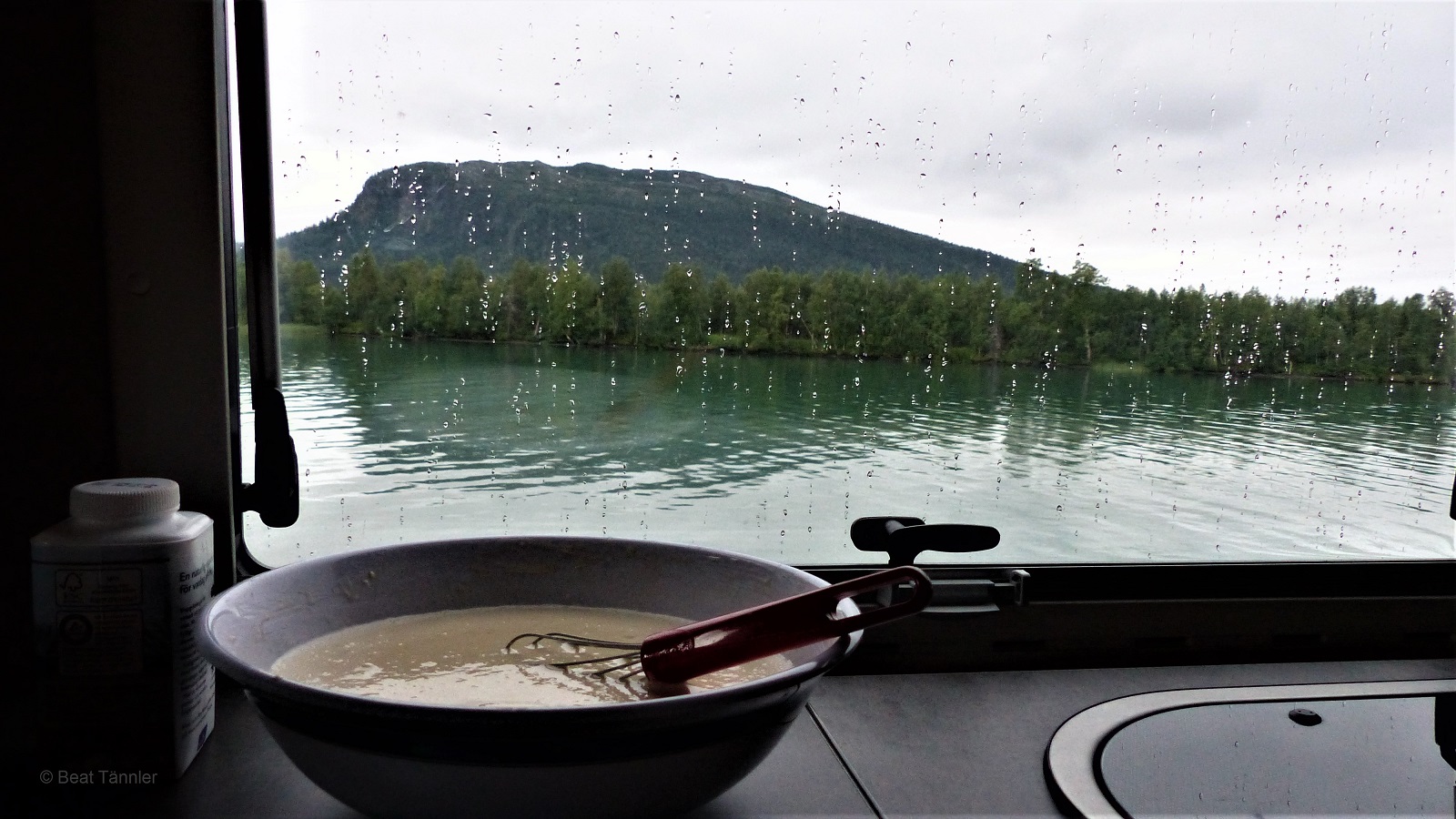 Heute fuhren wir nach Jokkmokk, um uns wieder einmal mit der grossen weiten Welt zu verbinden. Doch der Wetterbericht im Internet drohte mit Regenwetter. Deshalb fuhren wir sofort zurück, denn wir wollten noch Wäsche waschen.