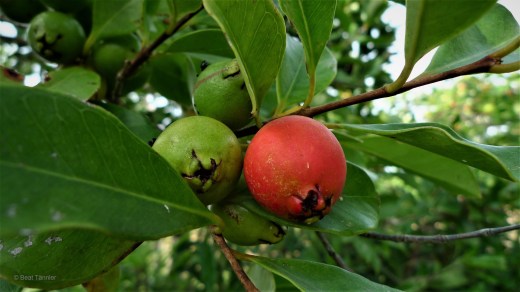 Die Erdbeerguaven reifen nicht alle zur gleichen Zeit, deshalb kann man über einen längeren Zeitraum immer wieder frische Früchte pflücken.
