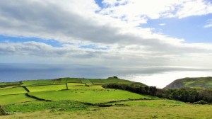 Die meisten Wiesen und Äcker sind mit schwarzen Lavasteinen eingefasst. Dieses Landschaftsbild ist typisch für Graciosa. Schwarz umrahmte saftige, grüne Wiesen, dahinter das blaue Meer … da kommt unweigerlich Ferienstimmung auf.