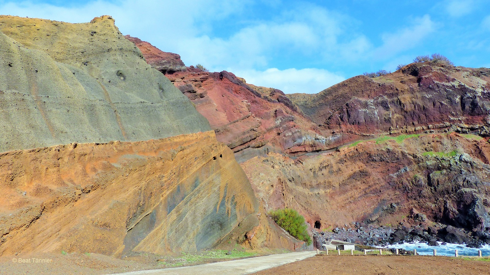 Der Vulkan, der die Insel erschuf, legte bei mehreren Ausbrüchen verschiedene Schichten aufeinander.