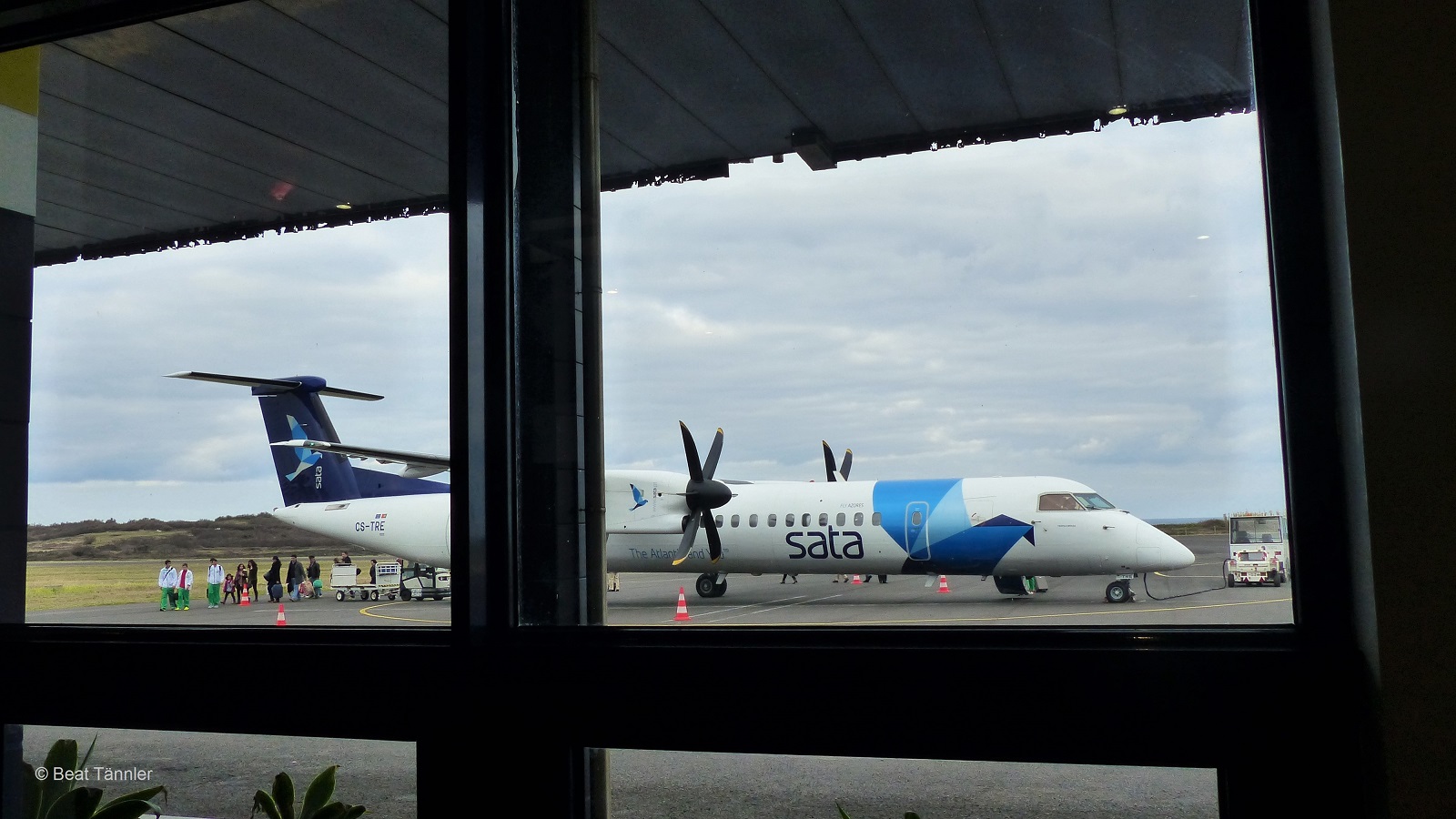 Bei der Zwischenlandung auf der Insel Terceira verliessen wir das Flugzeug und begaben uns, wie auf den Azoren üblich, zu Fuss über das Rollfeld zum Flughafengebäude.