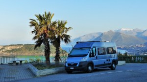 Wir parken ausserhalb von Apollonia und ärgern damit offensichtlich den „Wachhund“ der Ausgrabungsstätte, der lange Zeit unermüdlich zu uns runterkläfft.