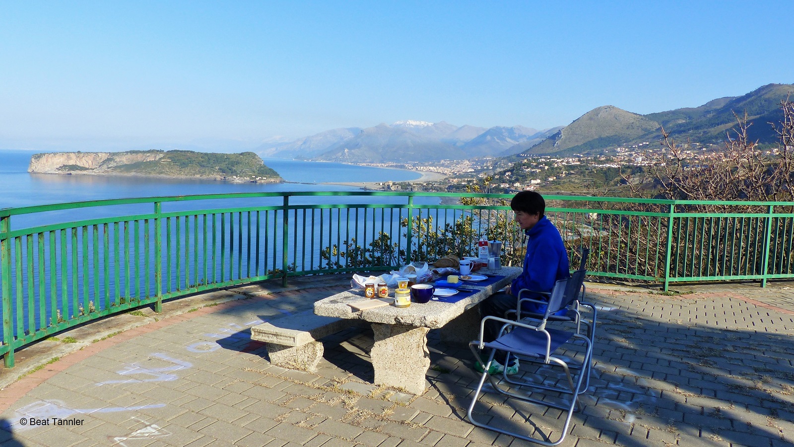 Annette setzt den letzten Blogteil (Apulien) online und Beat geniesst die Aussicht und die kühle Cola.