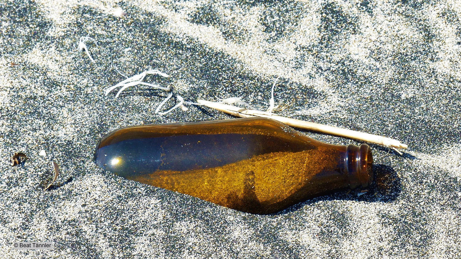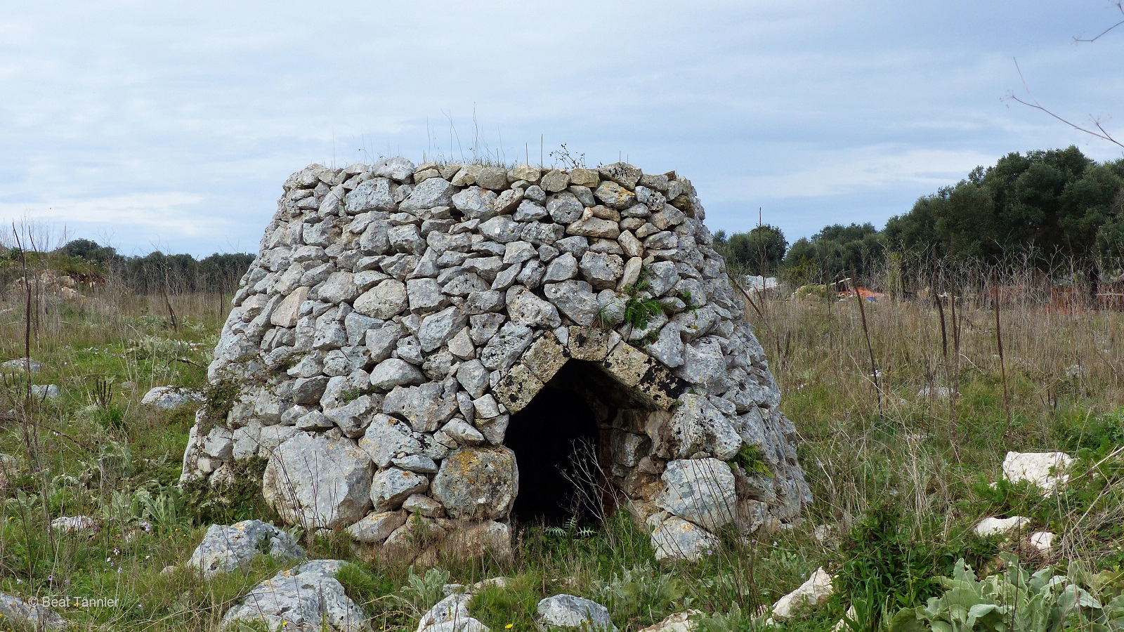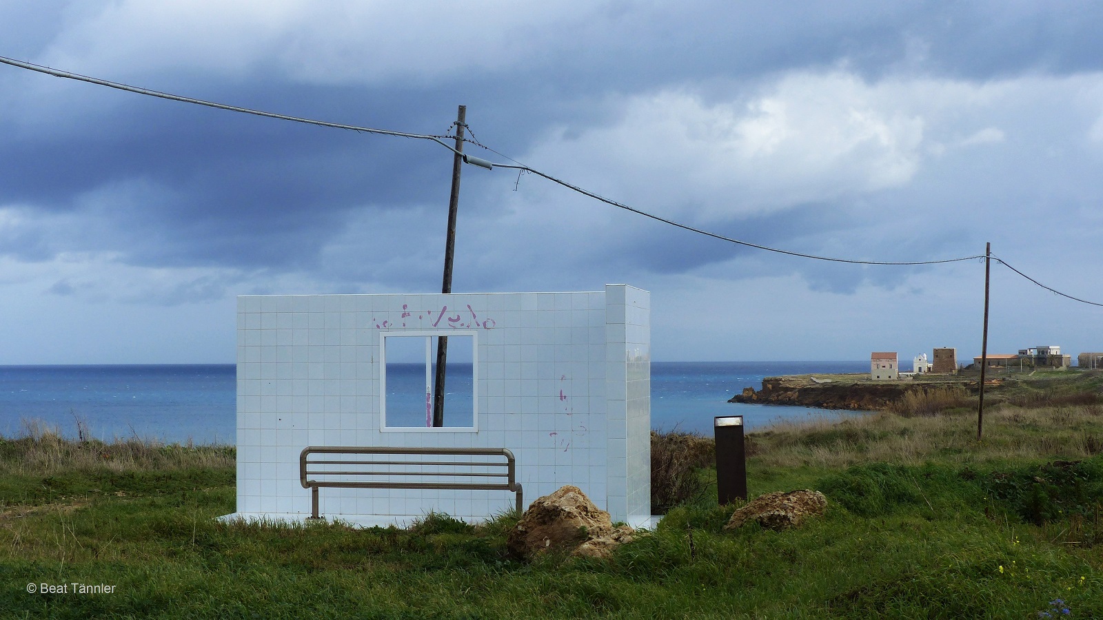 Wir sind die einzigen Menschen weit und breit und schlendern in der schönen Bucht herum. Im Sommer scheint es hier doch einige Badegäste zu geben. In einer der zwei Hütten sind Liegestühle gestapelt. Die andere scheint jeweils eine Strandbar zu beherbergen. Überlaufen kann es jedoch kaum sein, denn der einzige Weg, der hier herunter führt, ist nur mit einem geländegängigen Fahrzeug oder zu Fuss zu meistern.
