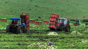 Rechts der „grosse Gemüser“ mit eigenem Geschäft, links die Kleinsthändler, die ihre Gartenprodukte feilbieten.