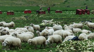 Er dirigiert die riesige Herde ohne Hund, nur mit Pfiffen, Zurufen und mit vielen rollenden „RRRRs“.