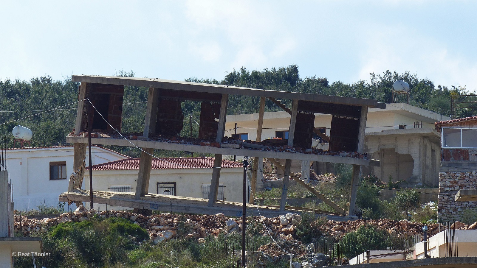 Uns fallen einige zerstörte Bauten in der Umgebung ins Auge.