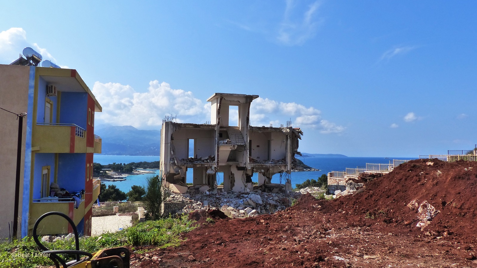 Für 10 Euro (wir haben immer noch keine albanische Lek) erhalten wir einen ruhigen, sicheren Übernachtungsplatz mit Strom und Frischwasser. Zudem dürfen wir die Toilette und Dusche in einem der Appartements benutzen.