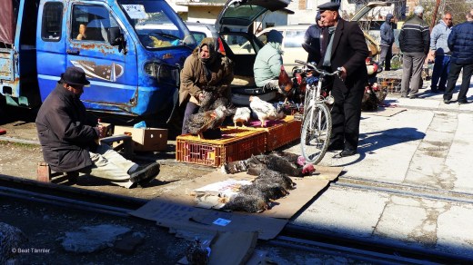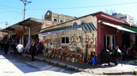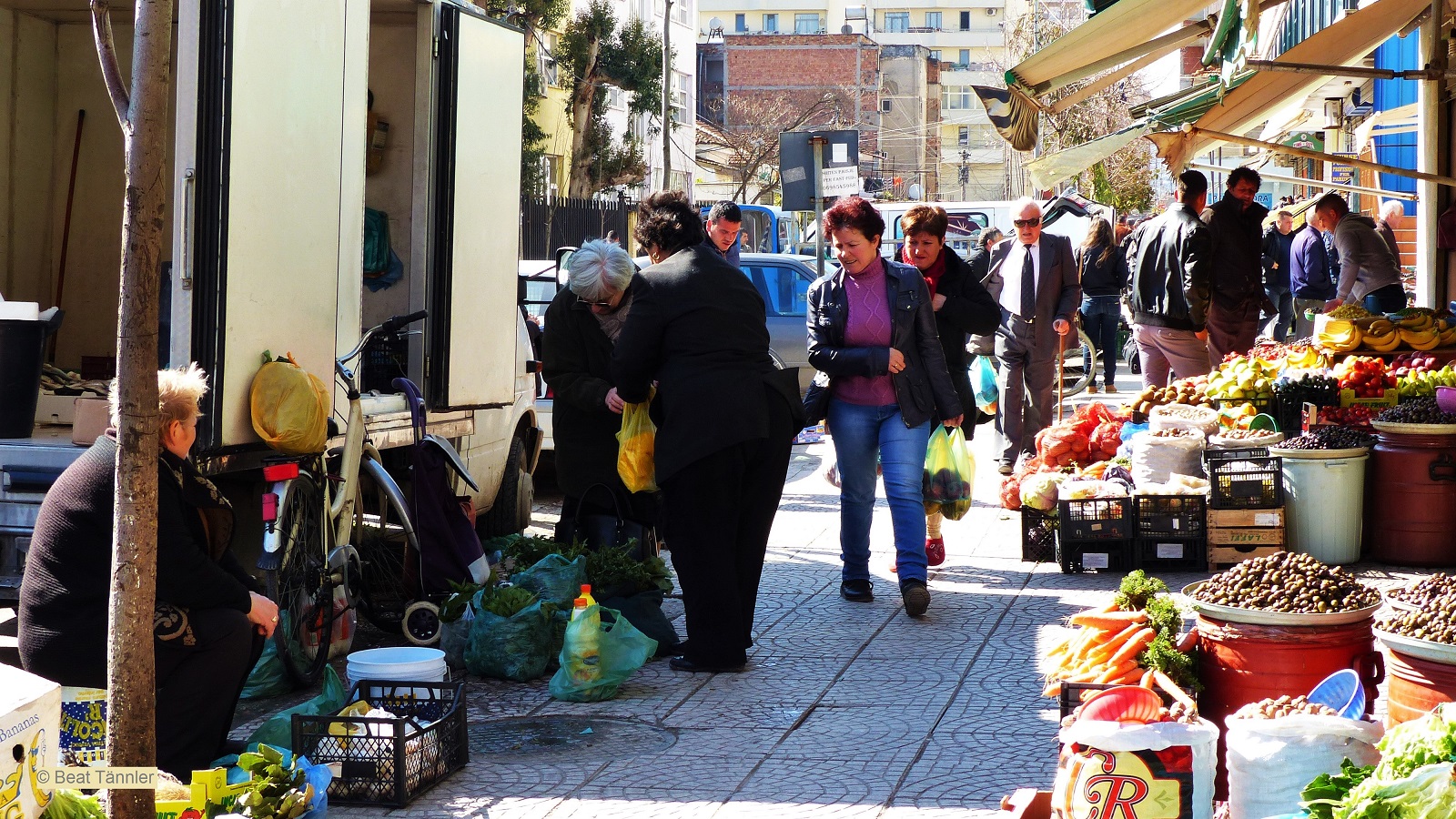 Am Nachmittag fahren wir in die nahe Stadt Fier. Dort verkaufen die vielen Klein- und Kleinsthändler am Strassenrand alles, was man zum täglichen Leben braucht. Wir sehen einen Mann, der lediglich fünf Salatköpfe, wohl aus dem eigenen Garten, anbietet.