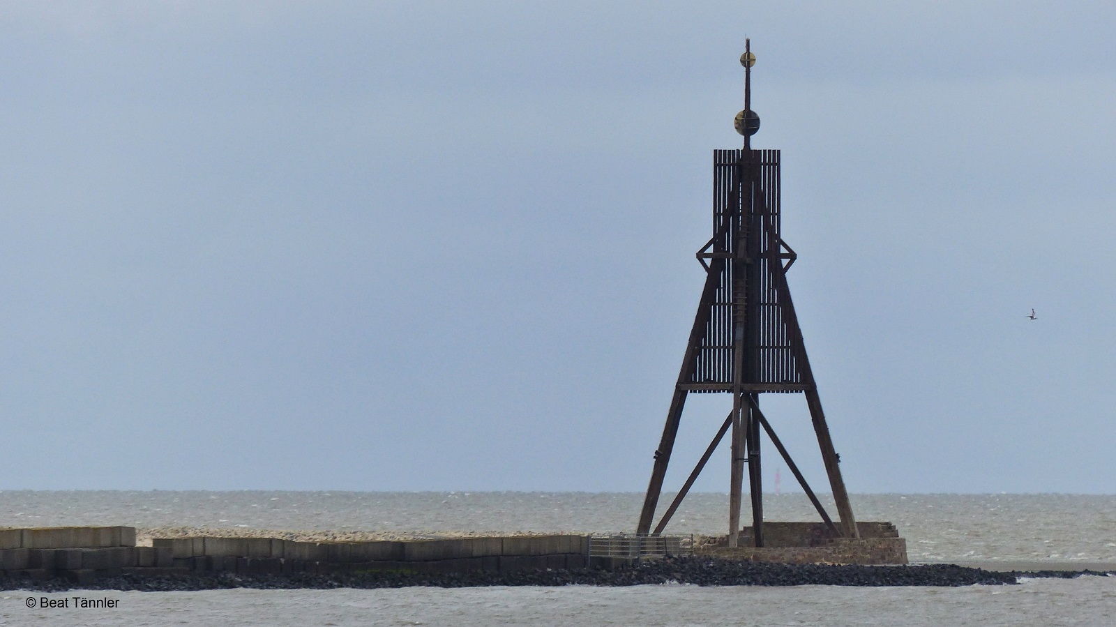 Bereits um 8:00 Uhr bringt uns ein Schiff auf die Insel Neuwerk. Das Schiff fährt aus dem Hafen, an der Kugelbake, dem Wahrzeichen von Cuxhaven, vorbei und in einem grossen Bogen um Neuwerk herum, bevor es dort anlegt. Der direkte Weg ist zu seicht und für Schiffe unpassierbar.