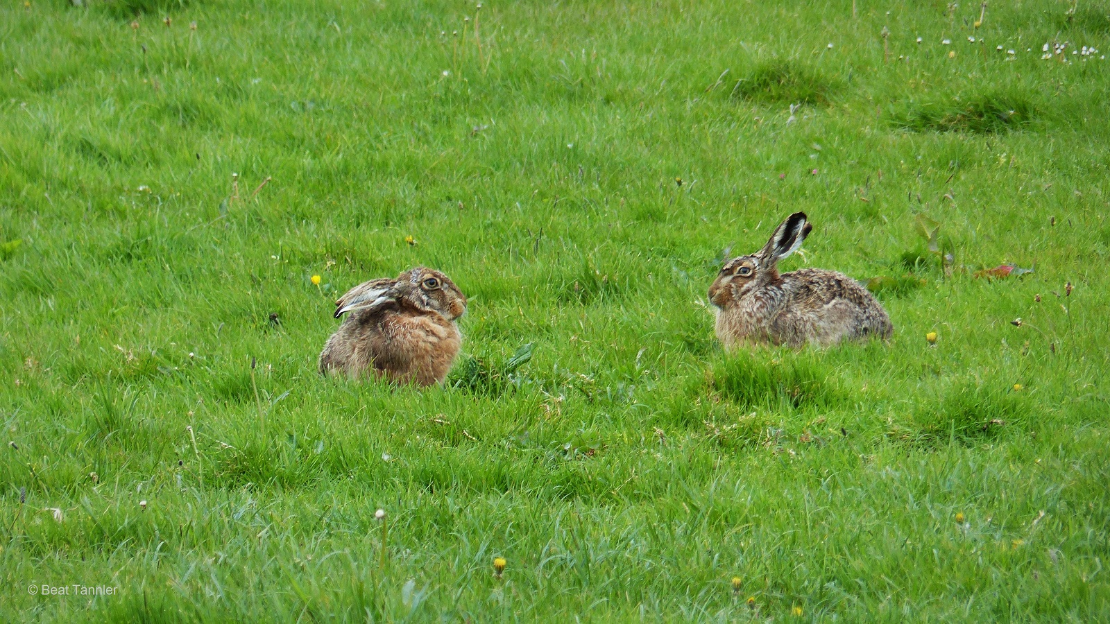 Im Gegensatz zu den Zugvögeln leben die Feldhasen das ganze Jahr hier.