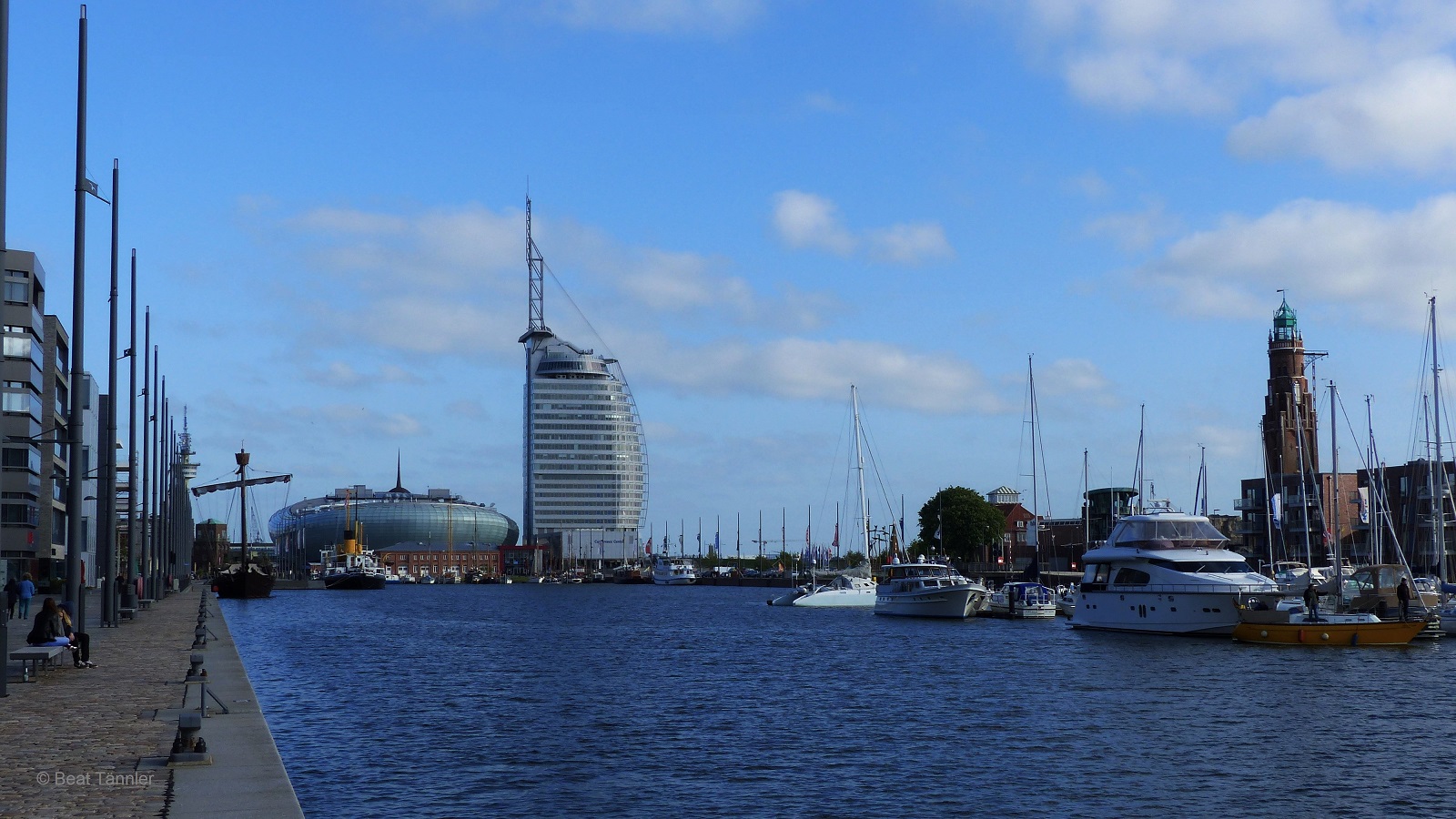 Heute gehts wieder in die Stadt, genauer nach Bremerhaven. Dort finden wir direkt am alten Hafen einen grossen Parkplatz, wo sich bereits andere Wohnmobile aufgereiht haben. Auch wir finden einen Platz mit Sicht auf den Hafen.