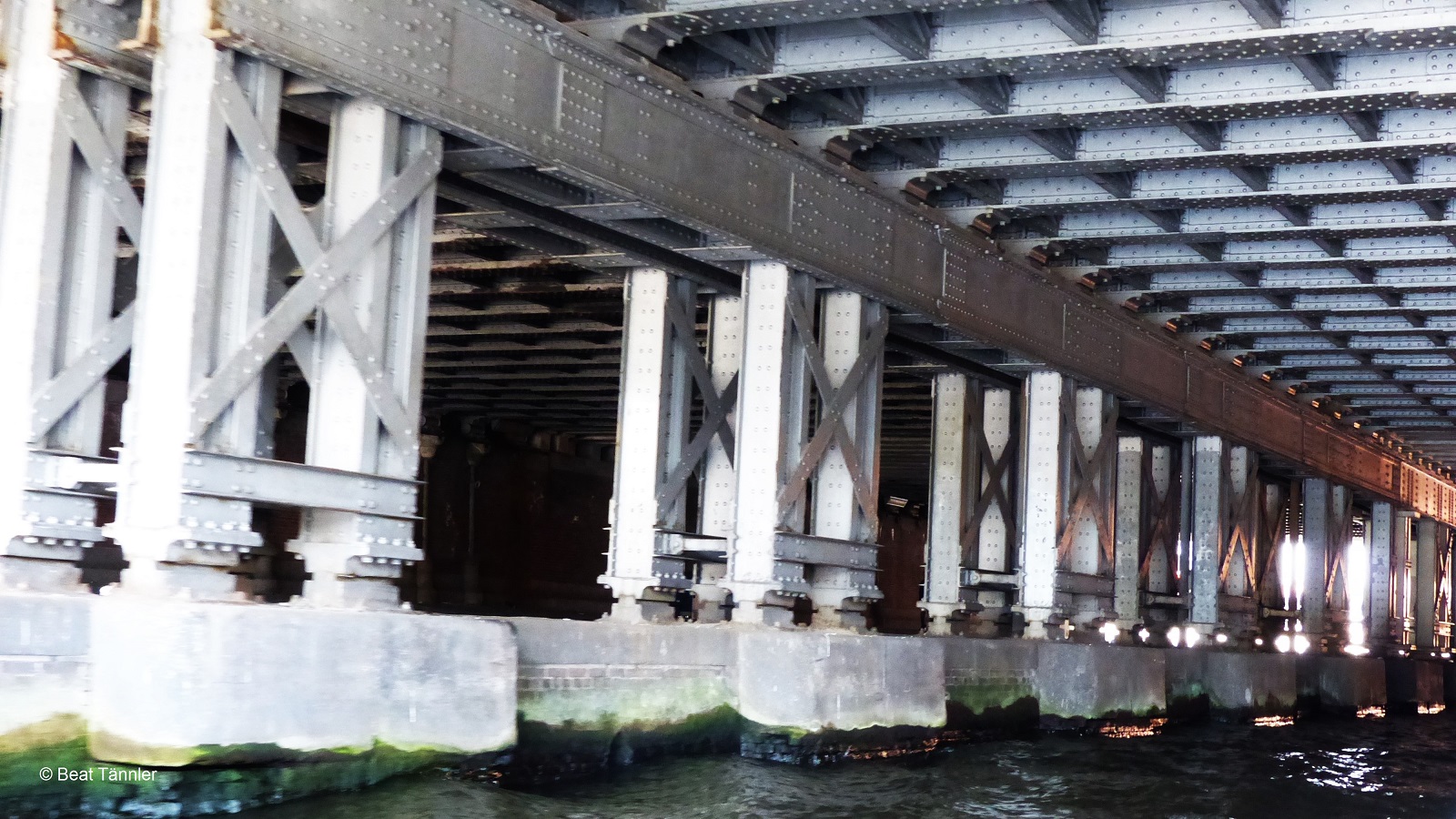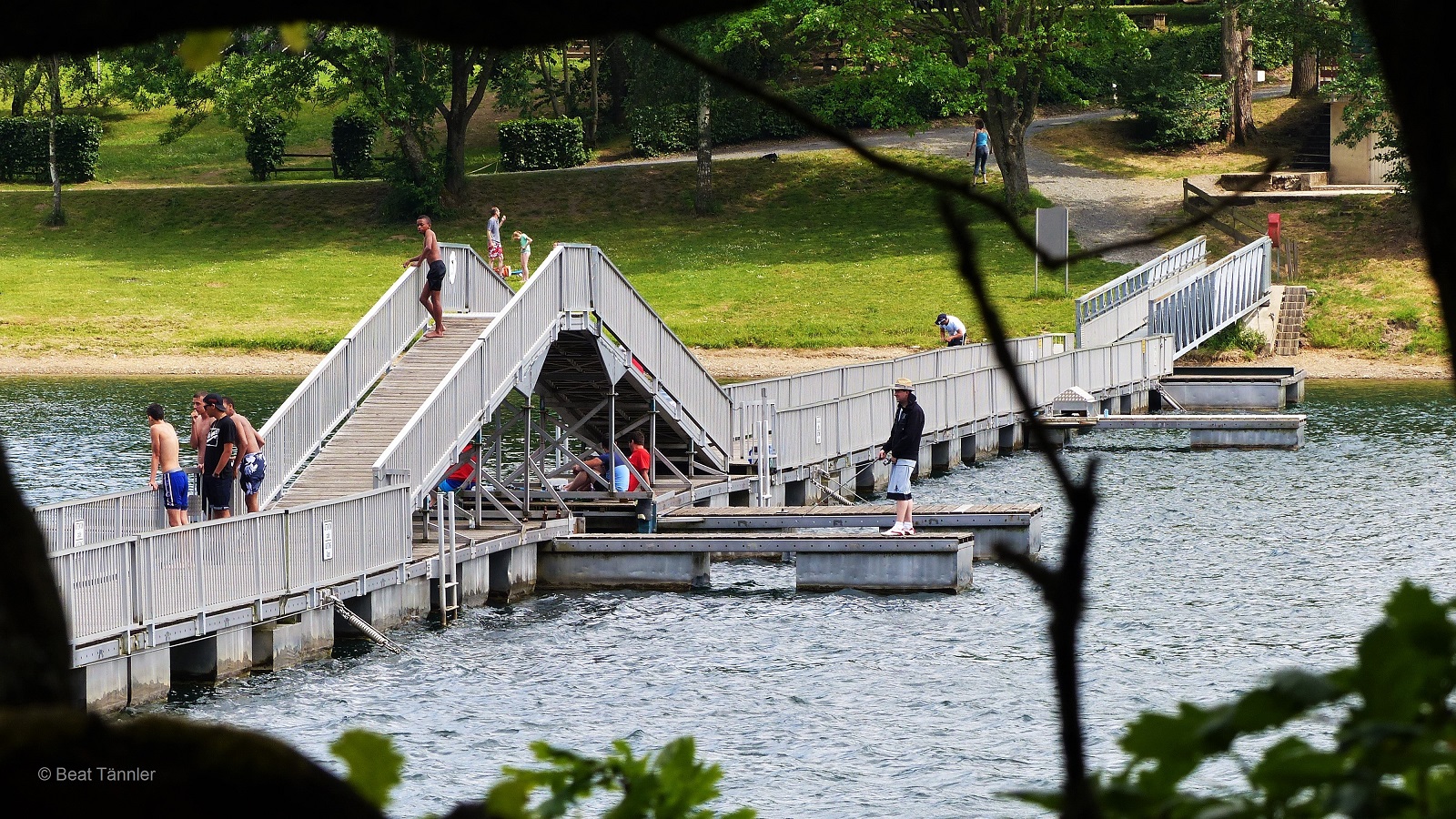 Wir überqueren die Brücke, die von Badenden und Fischern genutzt wird.