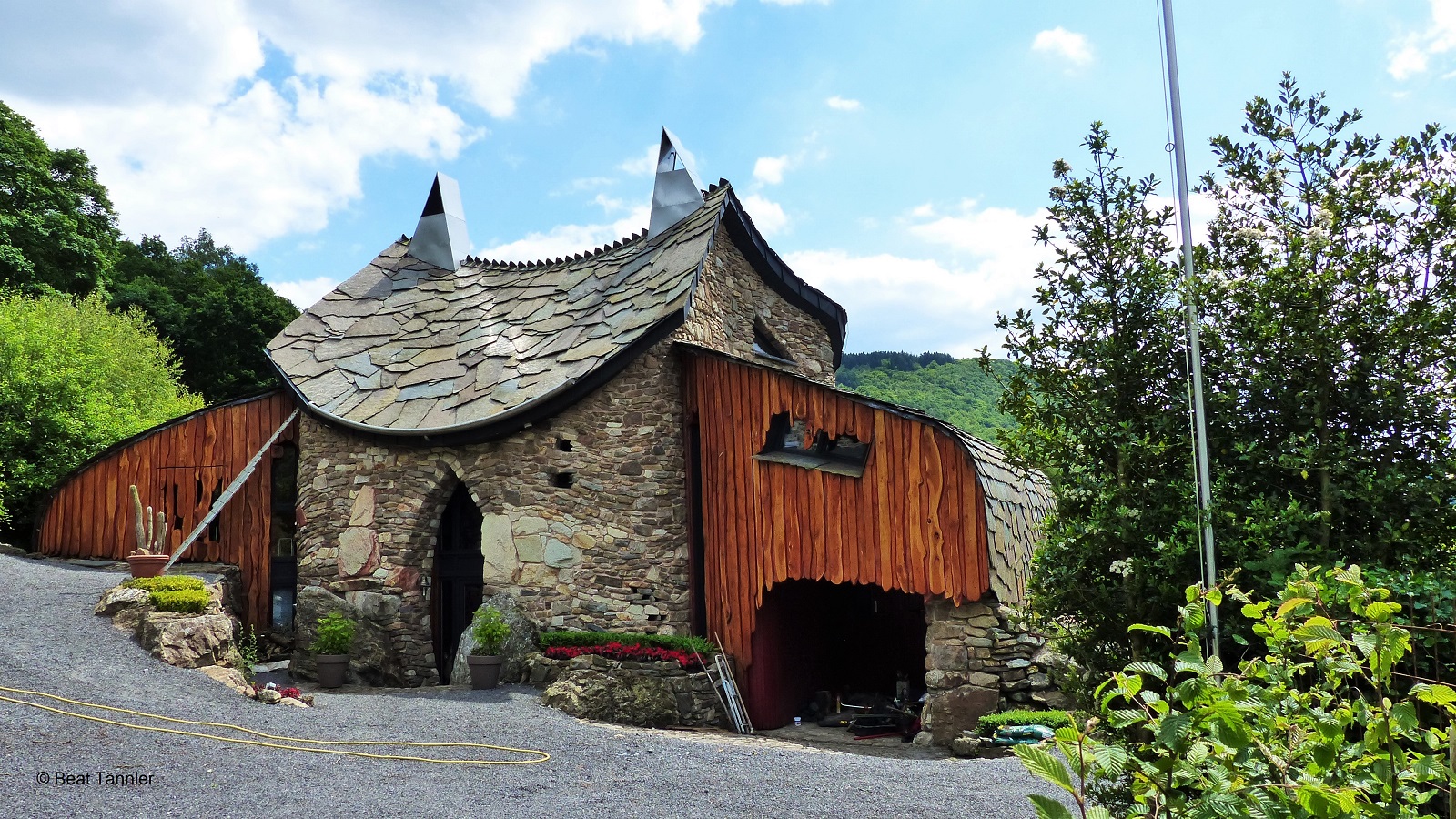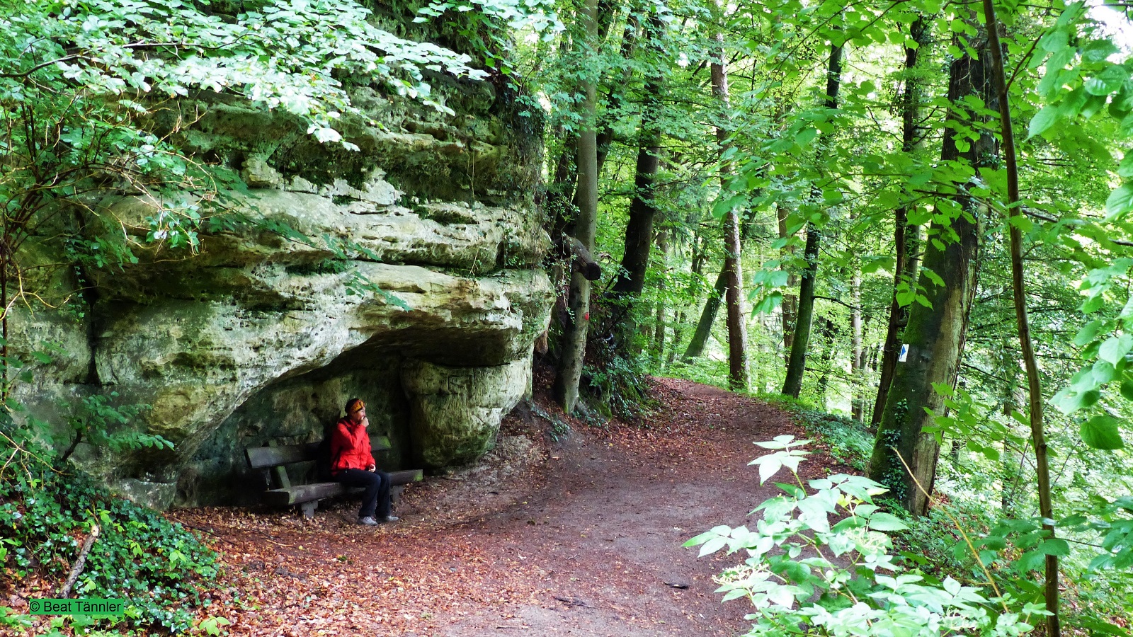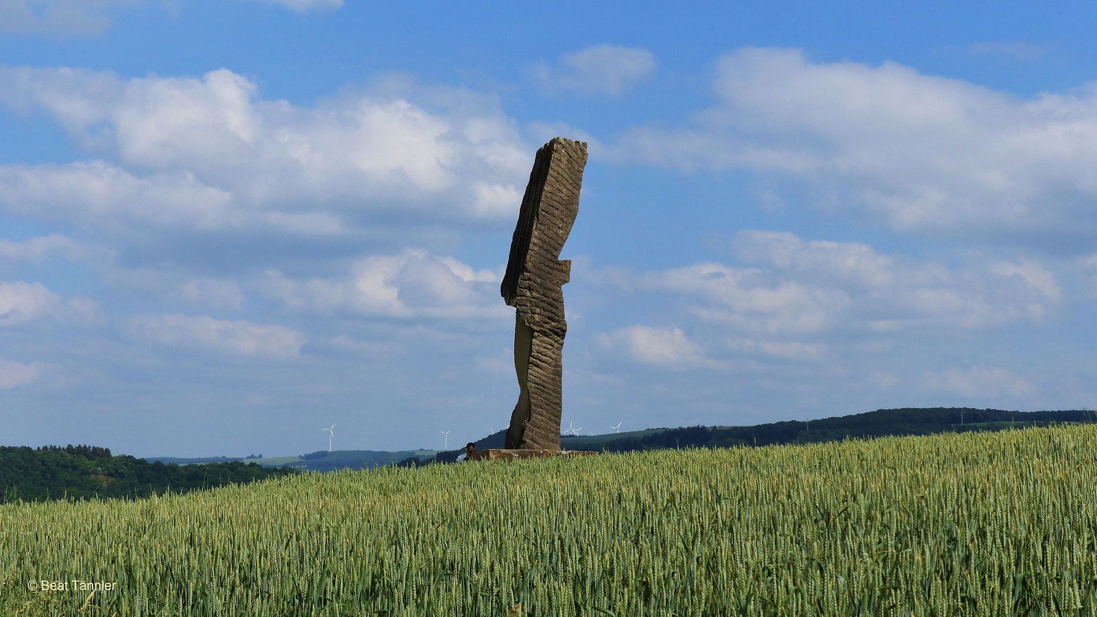 Nach Lultzhausen führt der Weg wieder bergan und an vielen, zum Teil eindrücklichen, Steinskulpturen vorbei. Dies ist ein Teil der Europäischen Skulpturenstrasse des Friedens, die von der normannischen Küste nach Moskau führt.