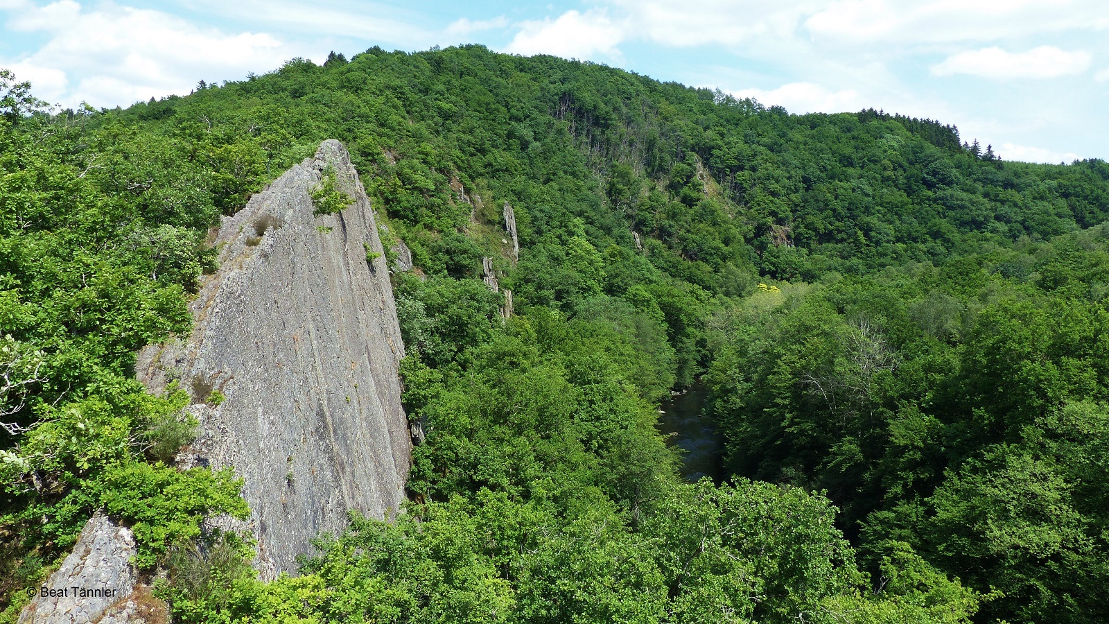 Wir mühen uns also wieder die steile Strasse hinauf auf die Überlandstrasse und versuchen es per Autostopp. Zum Glück hält bereits das zweite Auto und nimmt uns mit. Wir plaudern auf französisch mit dem netten Fahrer. Er legt uns eine weitere Wanderung ans Herz, diejenige hoch zum „Houfels“. Die müsse man einfach gemacht haben.