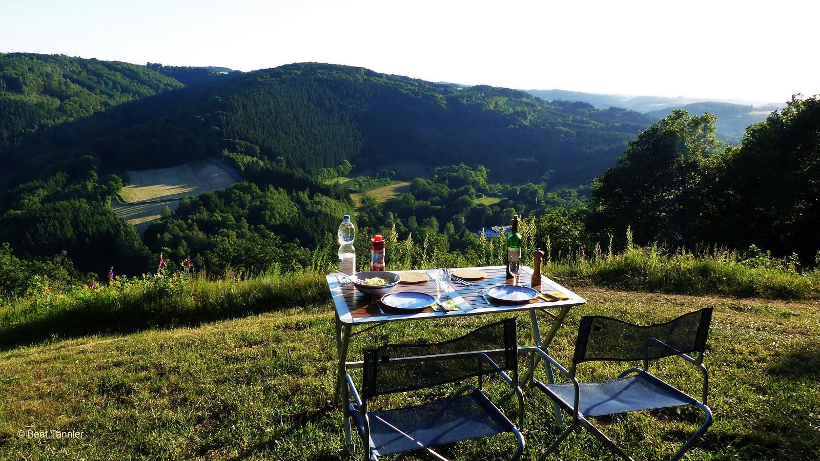 Nun suchen wir einen Übernachtungplatz. Doch die einsam gelegene St.Pirmin Kapelle, die wir ansteuern, wird von einem älteren Ehepaar in Beschlag genommen, das für morgen Mittag eine Feier vorbereitet.