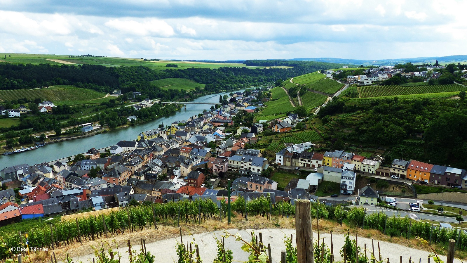In Larochette fahren wir an einer imposanten Schlossruine vorbei. Dann geht es weiter an die Mosel, den Grenzfluss zwischen Luxemburg und Deutschland.