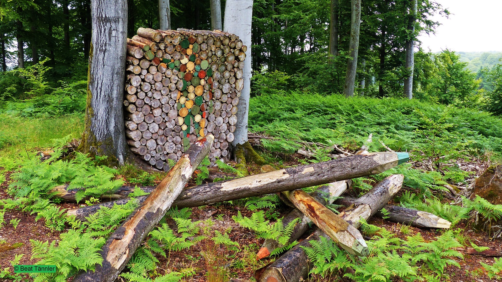 Die gefällt uns sehr und wir beschliessen trotz Nieselregen die weiteren Kunstwerke anzuschauen, die an diesem Waldweg liegen sollen.