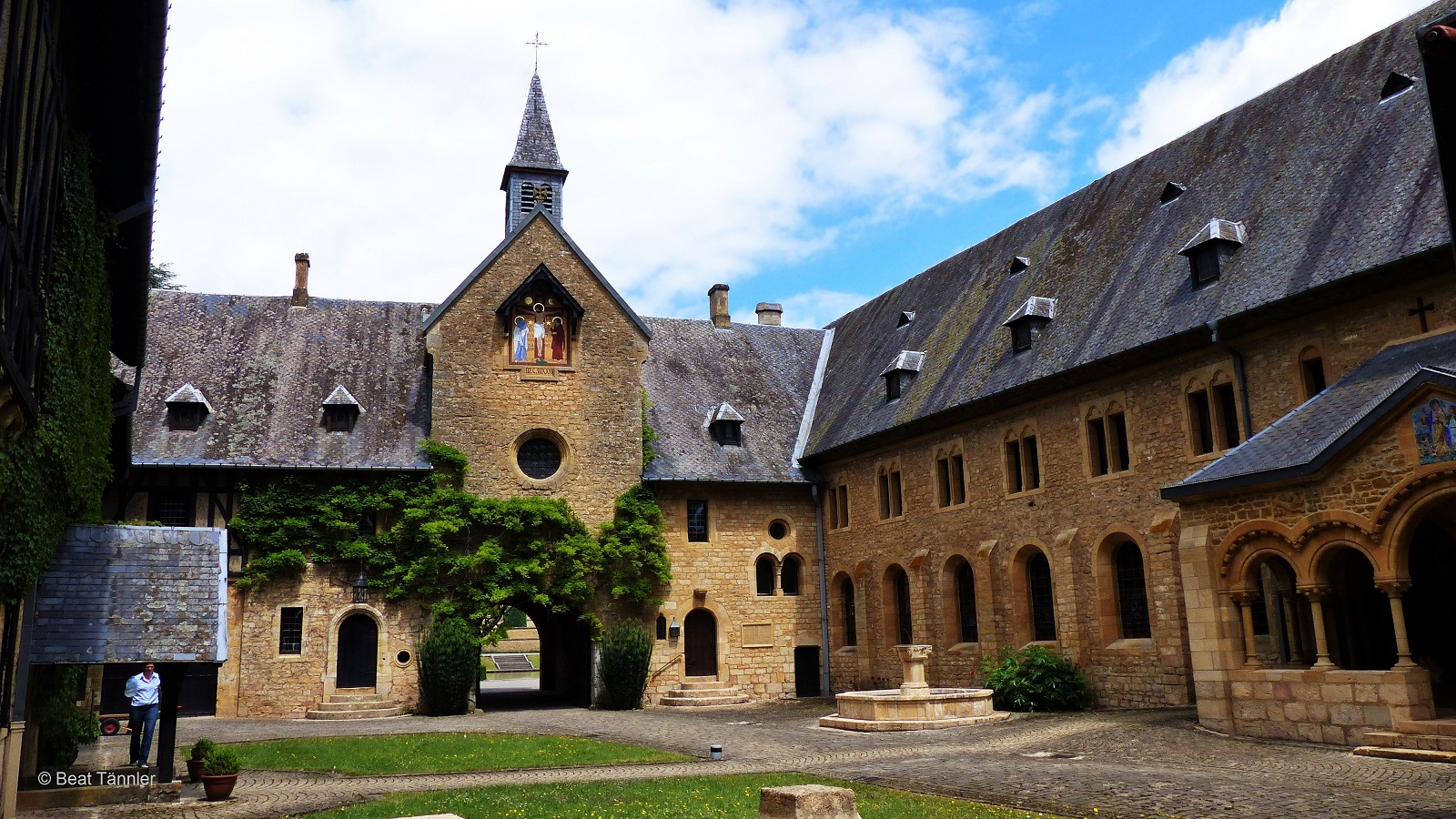 In Belgien besuchen wir die Abtei d’Orval. Das Zisterzienser-Kloster wurde im Laufe seines Bestehens mehrmals zerstört und teilweise wieder aufgebaut. Es wird noch heute von Mönchen genutzt. Deshalb sind nicht alle Teile öffentlich zugänglich.