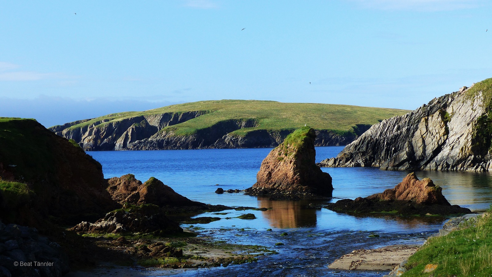 In der Nähe von Gualin House fällt uns auf, wie grün diese Gegend ist. Auf den Shetland-Inseln haben die braunen Farben vorgeherrscht.