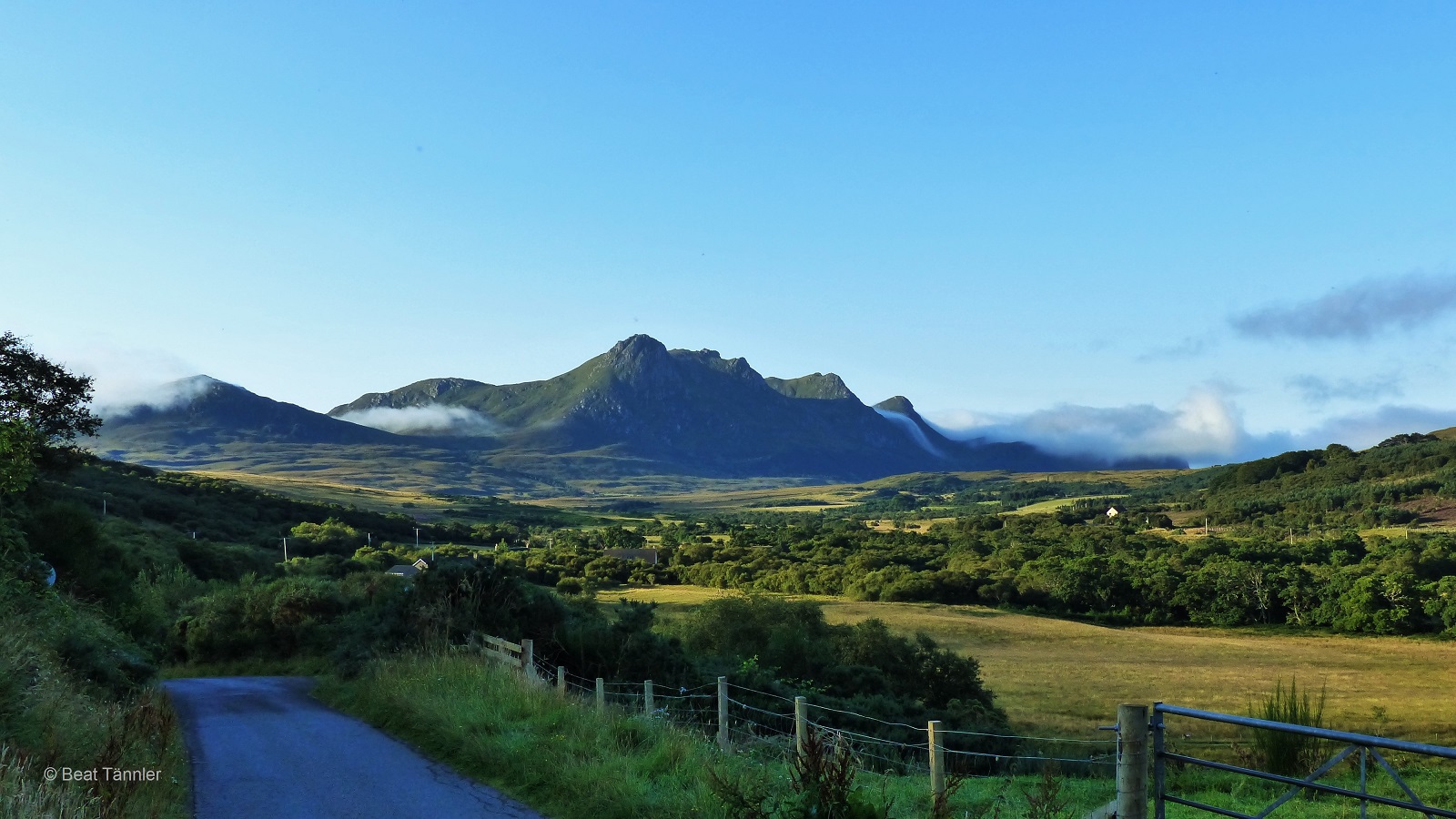 Die Bewölkung lockert sich allmählich auf. Wir sind noch keine Stunde zurück in unserem NOBIS, als sich der Ben Loyal wieder wolkenlos in der Sonne präsentiert.