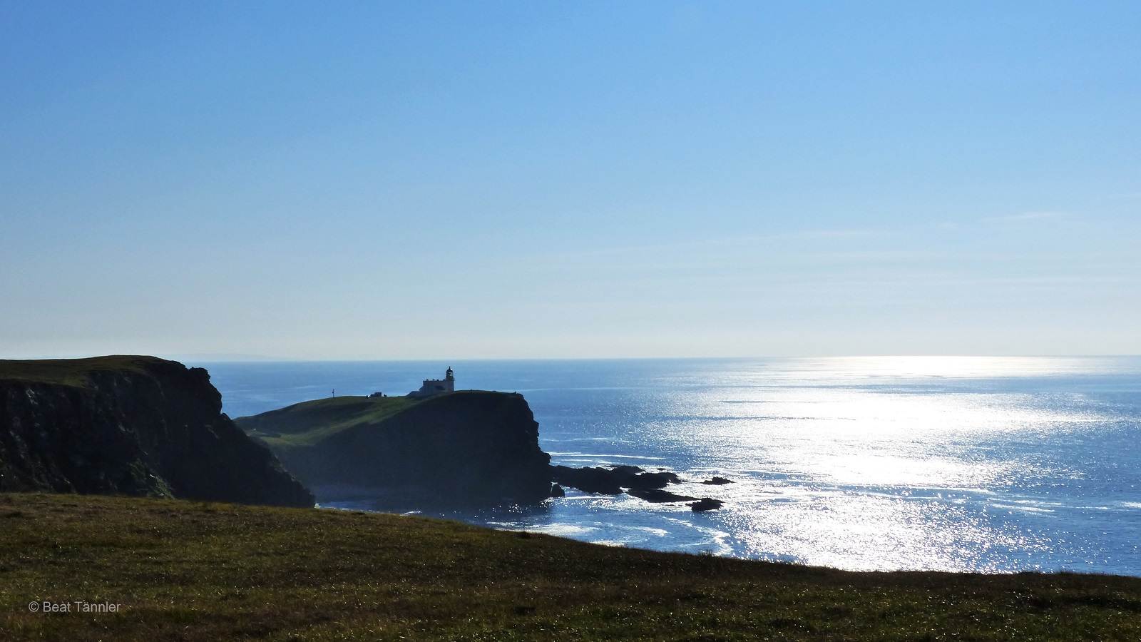 Am Head of Stoer wollen wir uns auf den engen Parkplatz stellen. Die Betreiberin eines kleinen Kioskes kommt gelaufen und meint, wenn wir hier Übernachten wollten, wäre es oben beim Leuchtturm schöner.