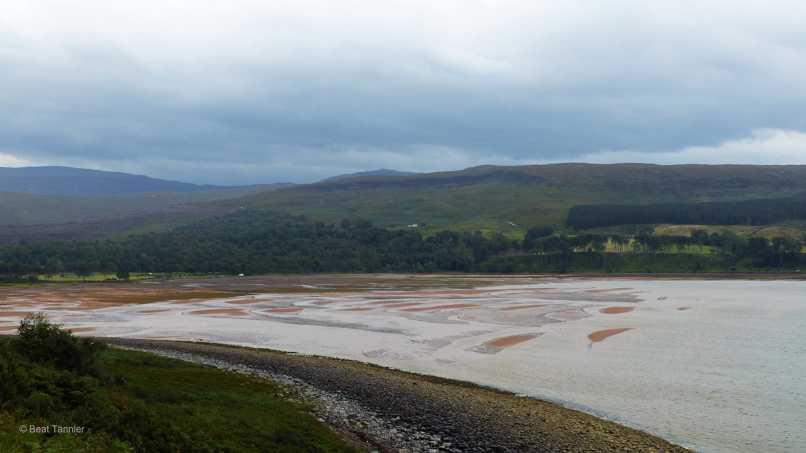 Wenn bei Applecross der Meeresspiegel sinkt, zeigen sich sichelförmige Sandbänke.