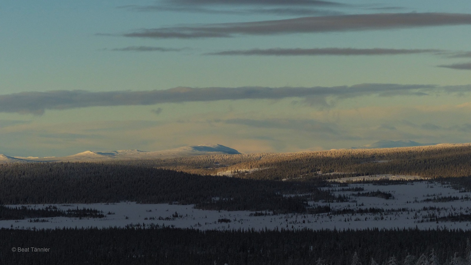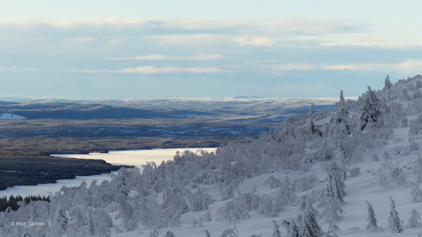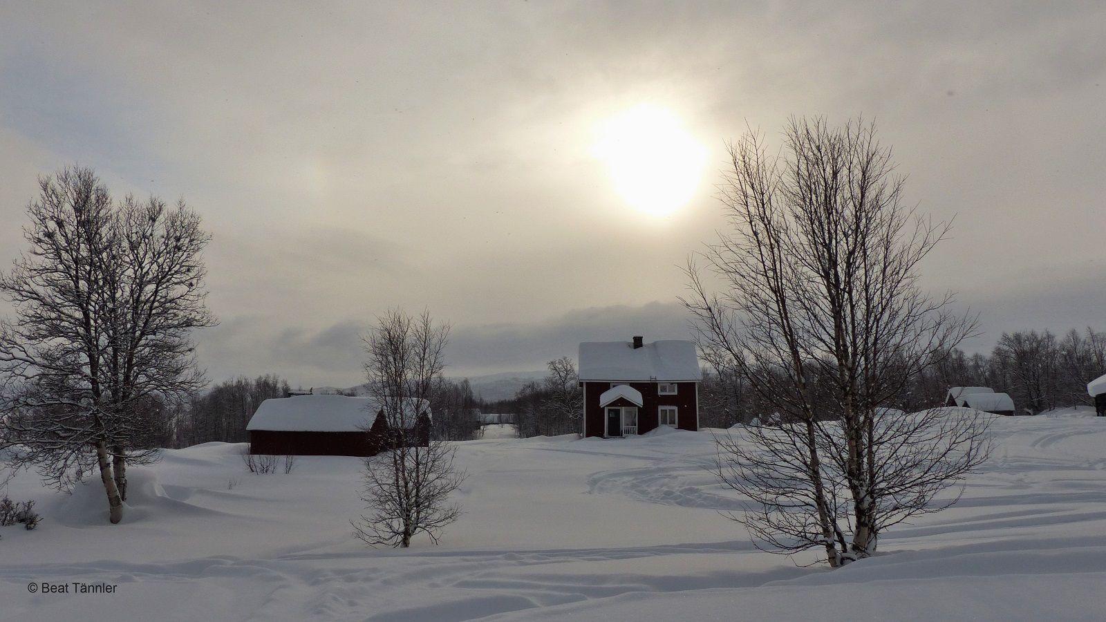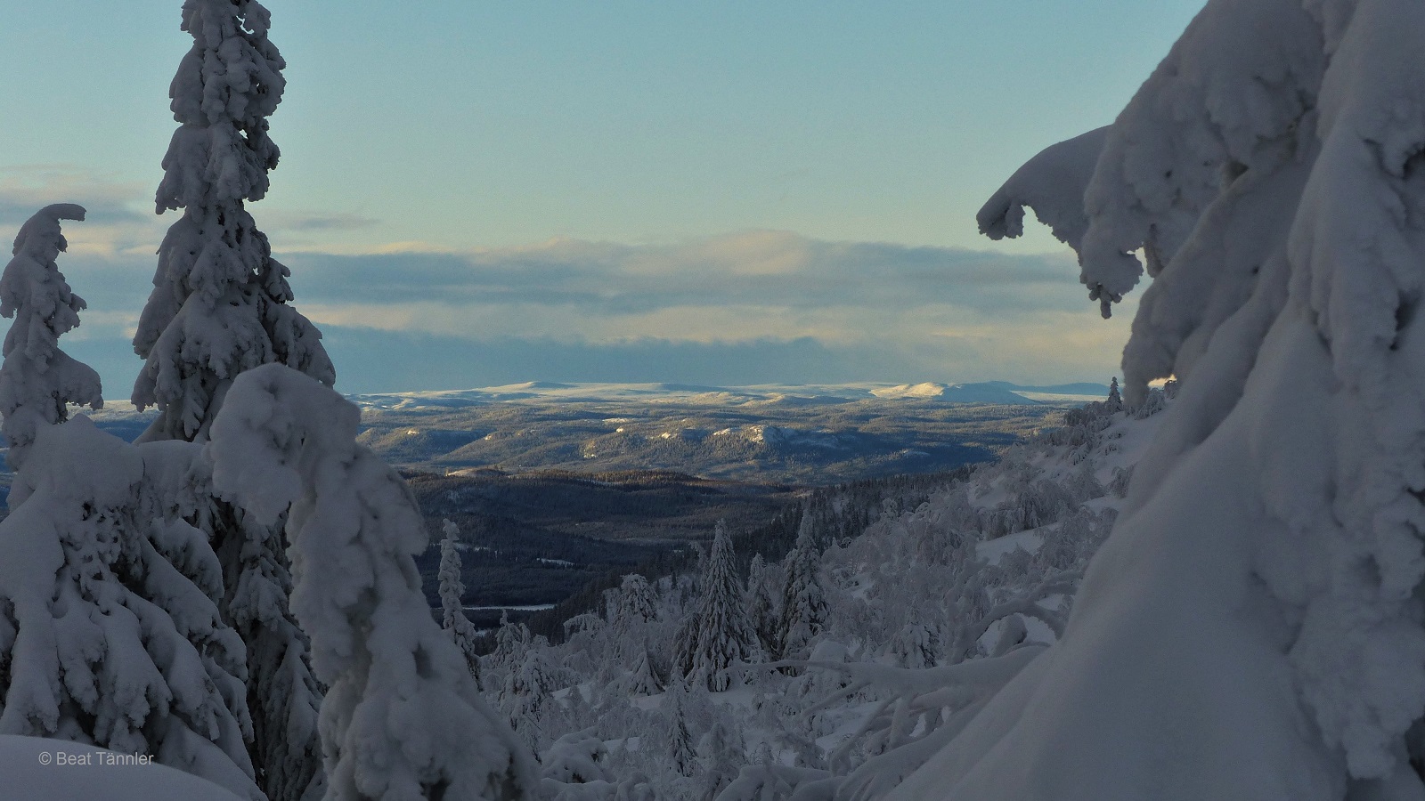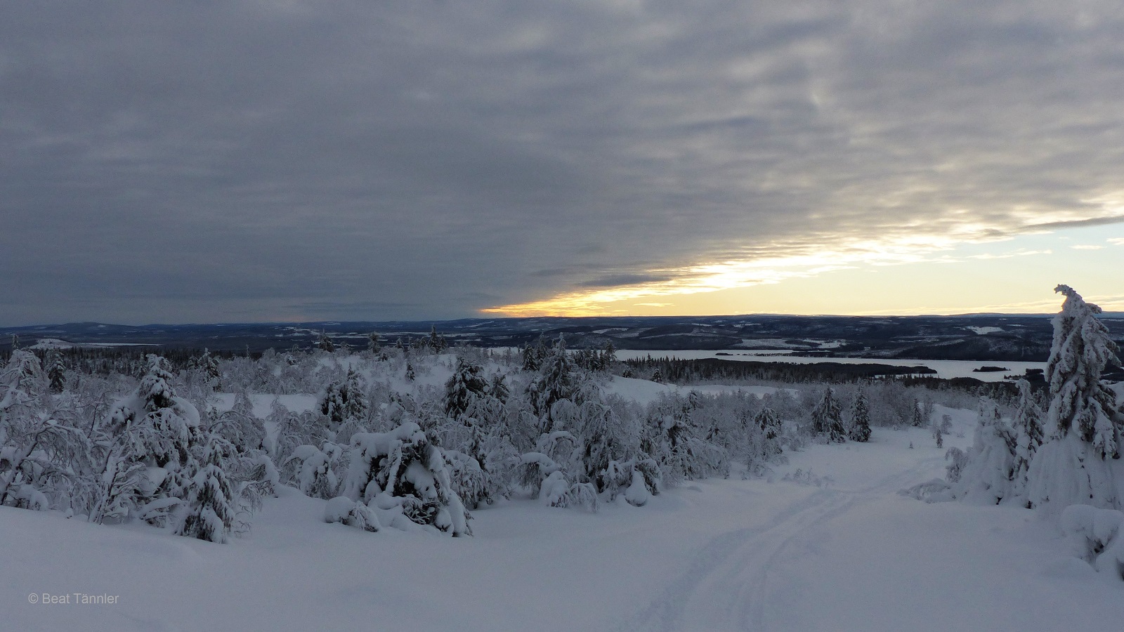 Es schneit nun nicht mehr und die Sonne versucht sich durch die Wolkendecke bemerkbar zu machen.