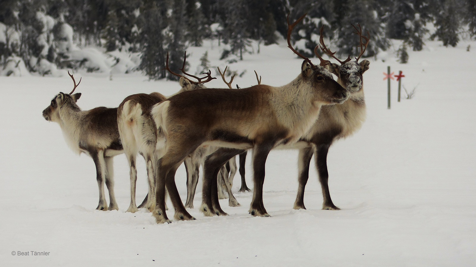 Hurra, heute geht es für vier Tage in die Berge, ins Fjäll, wie das hier heisst. Am Morgen verladen wir Schneemobil, Lebensmittel, persönliche „Unverzichtbarkeiten“, Futter für die Tiere, Pulka, Schlitten und 25 Hunde auf zwei Anhänger und fahren mit den Autos los nach Örnvik.