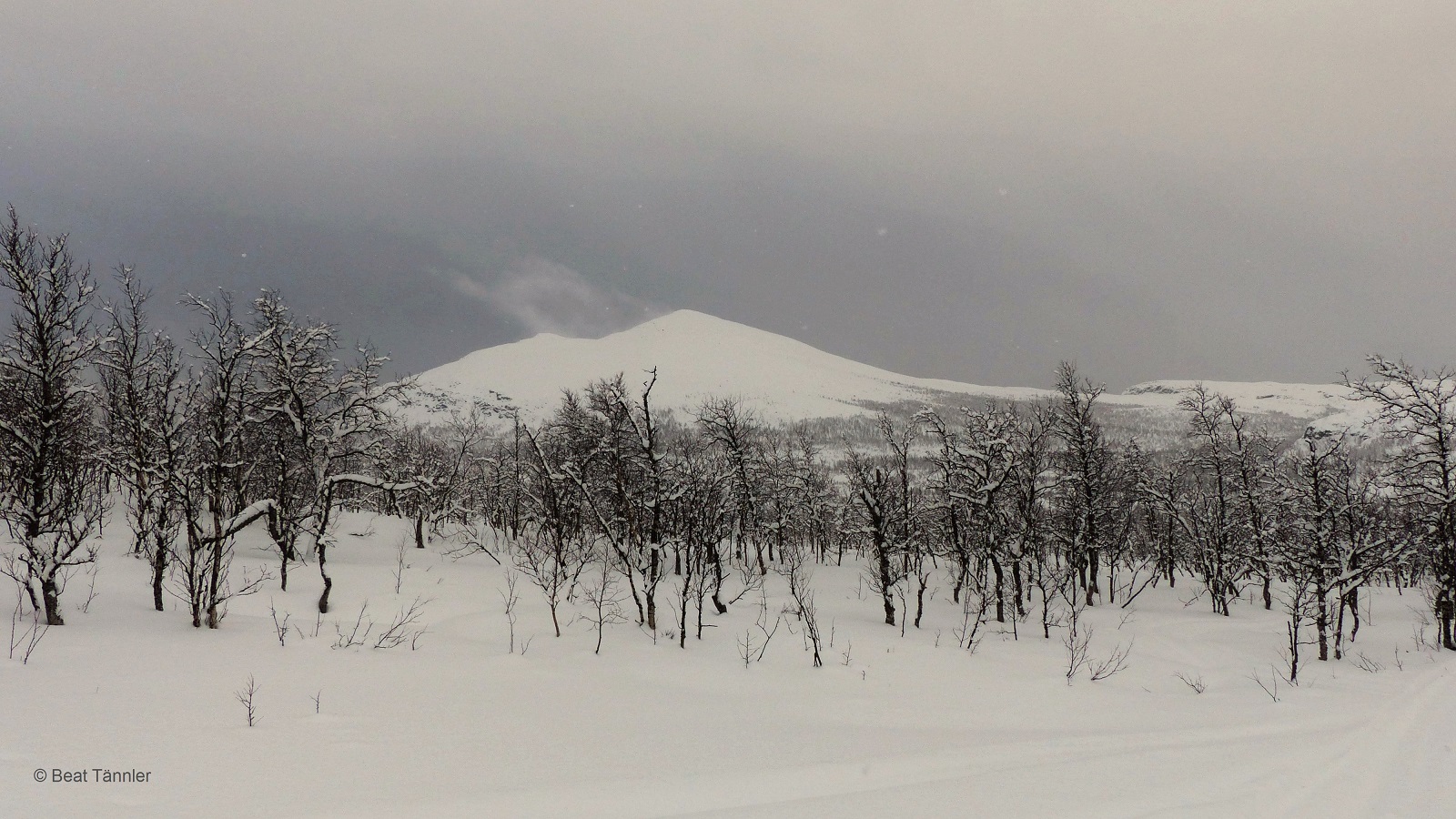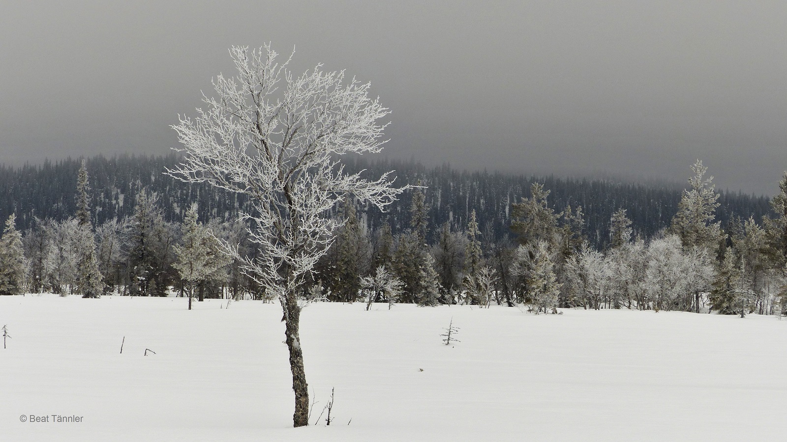 Die Birken wachsen in diesem harten Klima nur langsam und viele sind knorrig und von Wind und Wetter gebeutelt. Der Schnee auf den Ästen erscheint dagegen locker und leicht.