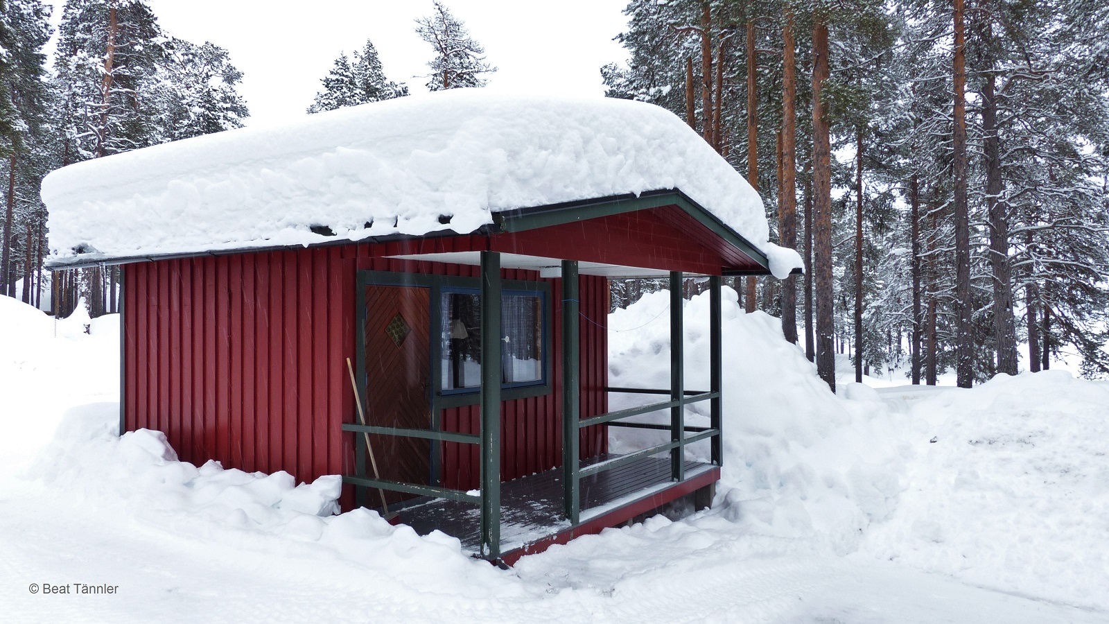 Im Årrenjarka Fjällby Camping holt Beat am Empfang die Schlüssel für zwei Häuschen. Die Gäste schlafen in einem und Matthias und wir im anderen. Die Hüttchen sind klein und haben kein fliessendes Wasser, sind sonst aber mit allem Notwendigen ausgestattet. Die Toilette ist, wie auf Campingplätzen üblich, in einem zentralen Gebäude untergebracht, wo man auch duschen und Geschirr spülen kann.