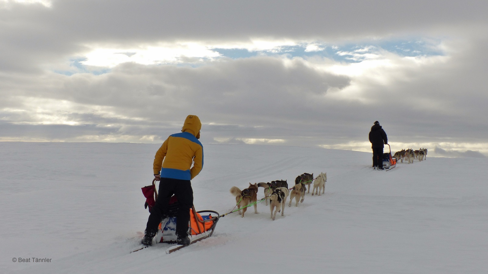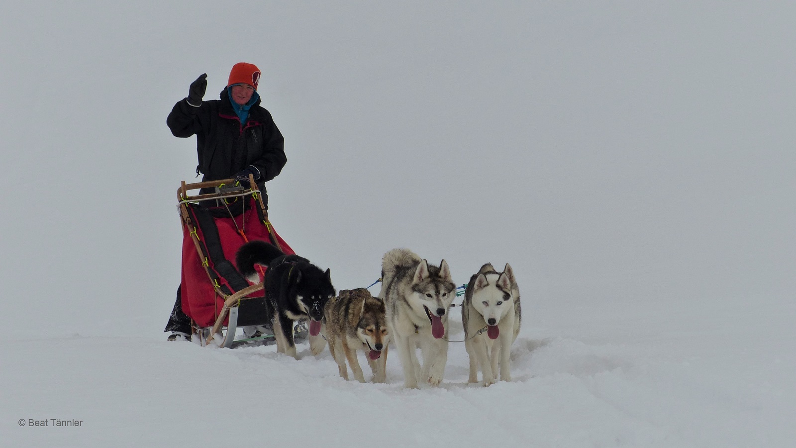 Es ist bewundernswert, welche Leistung die Hunde vollbringen. Je sechs Huskys zogen einen Schlitten mit dem Schlittenhundeführer in den vier Tagen 201 Kilometer weit.