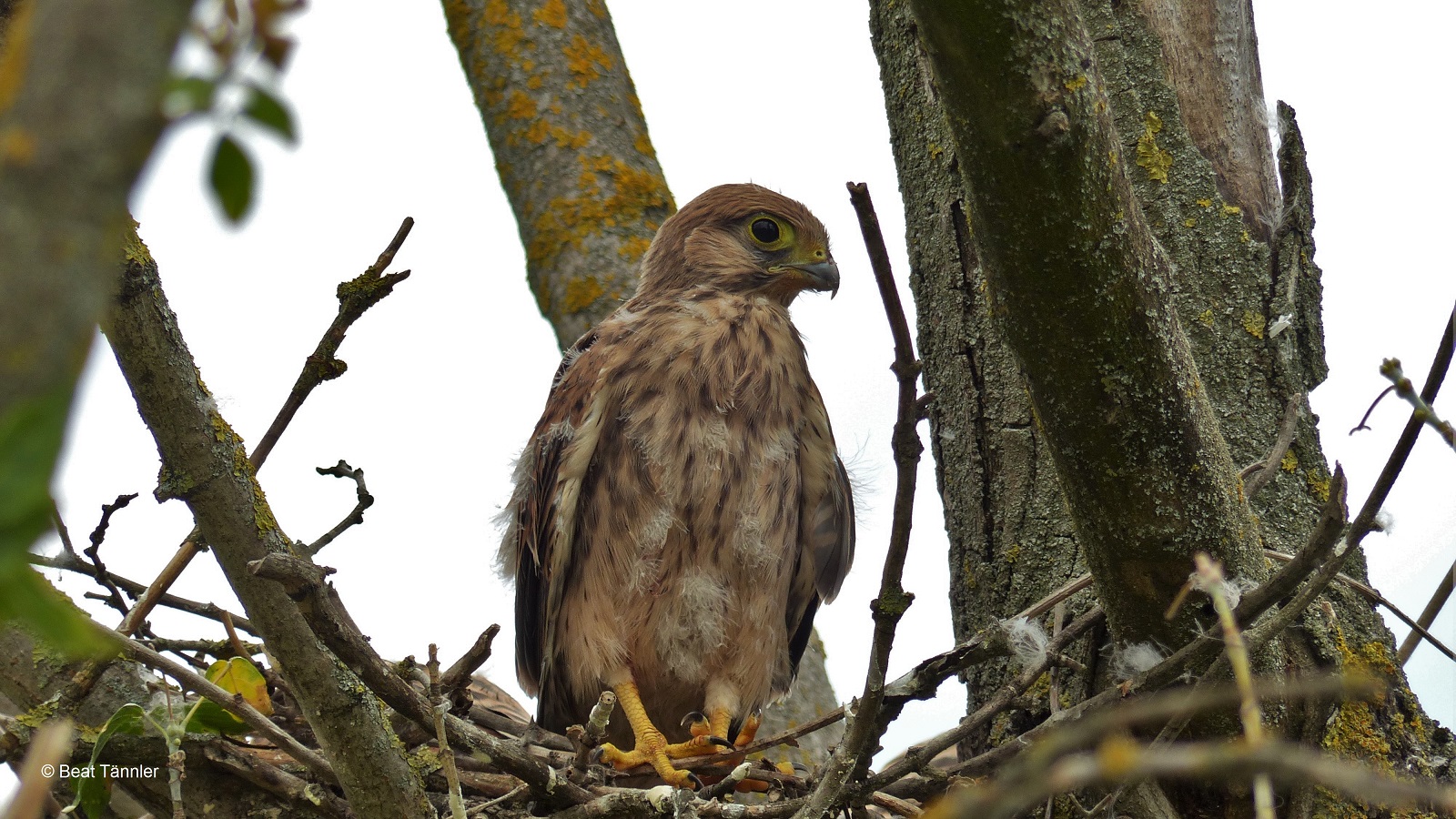 Wir steigen vom Turm herab und sehen gerade noch, wie ein Turmfalke wegfliegt, der seinen drei Jungen eine Maus ins Nest gebracht hat.