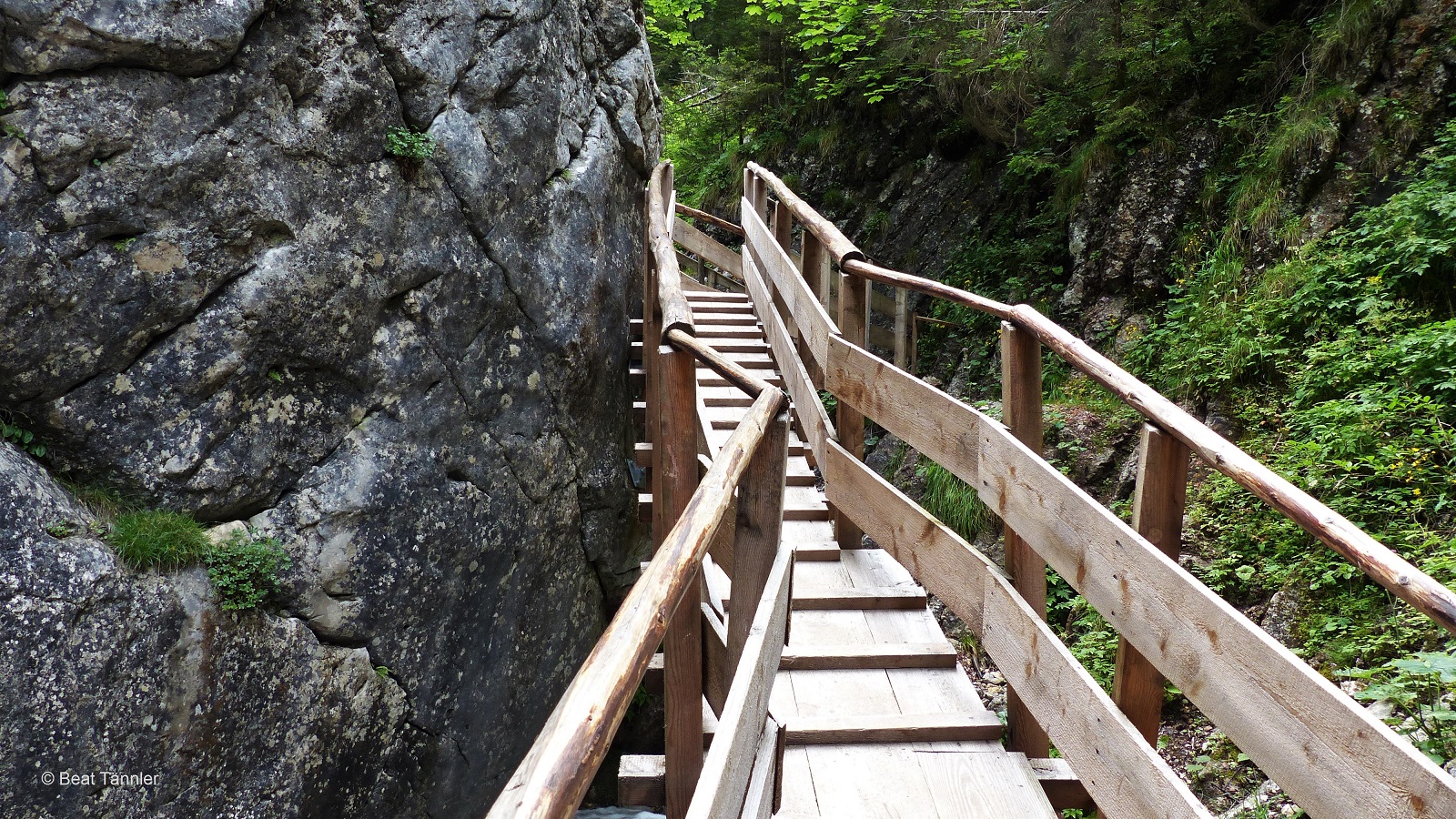 Der Weg führt auf 2.5 km zum Teil steil an und über 18 Brücken immer wieder von einer Bachseite auf die andere. Der Weg wurde sehr liebevoll in das Gelände eingebettet und mit Brunnen und Holzbänken ausgestattet.