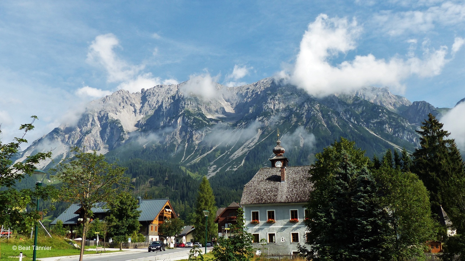 In Edlitz kaufen wir ein. Auf dem Haus nebenan üben junge Störche das Fliegen. Abwechselnd breiten sie ihre Flügel aus, flattern ein wenig und ruhen sich danach wieder aus. Für den Flug nach Afrika fehlt noch einiges an Training, wie wir meinen. Doch der Winter ist ja noch fern.