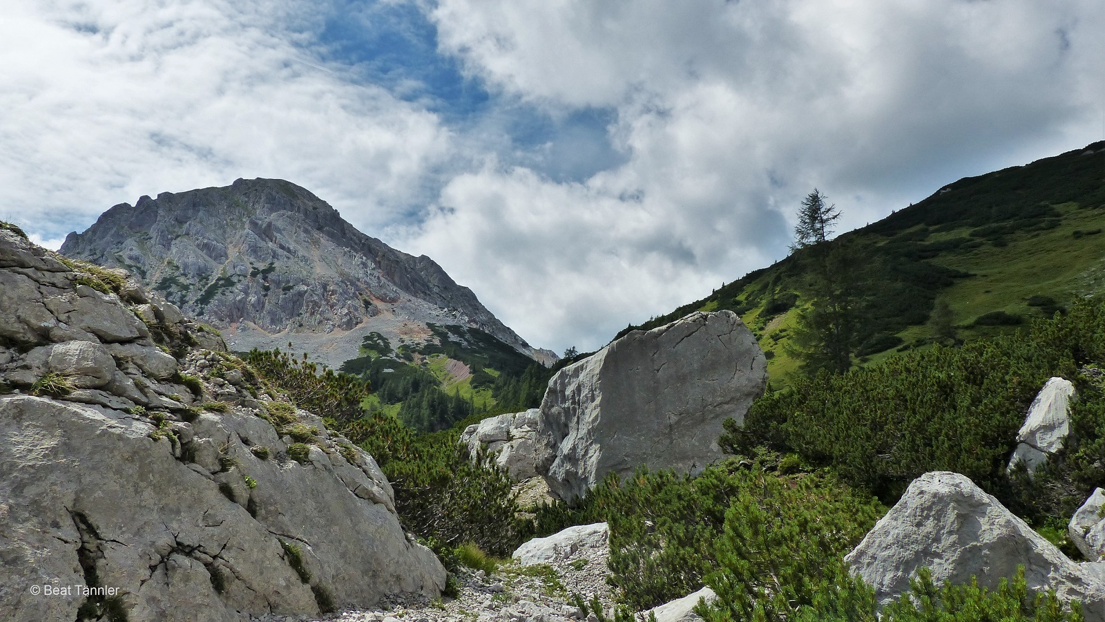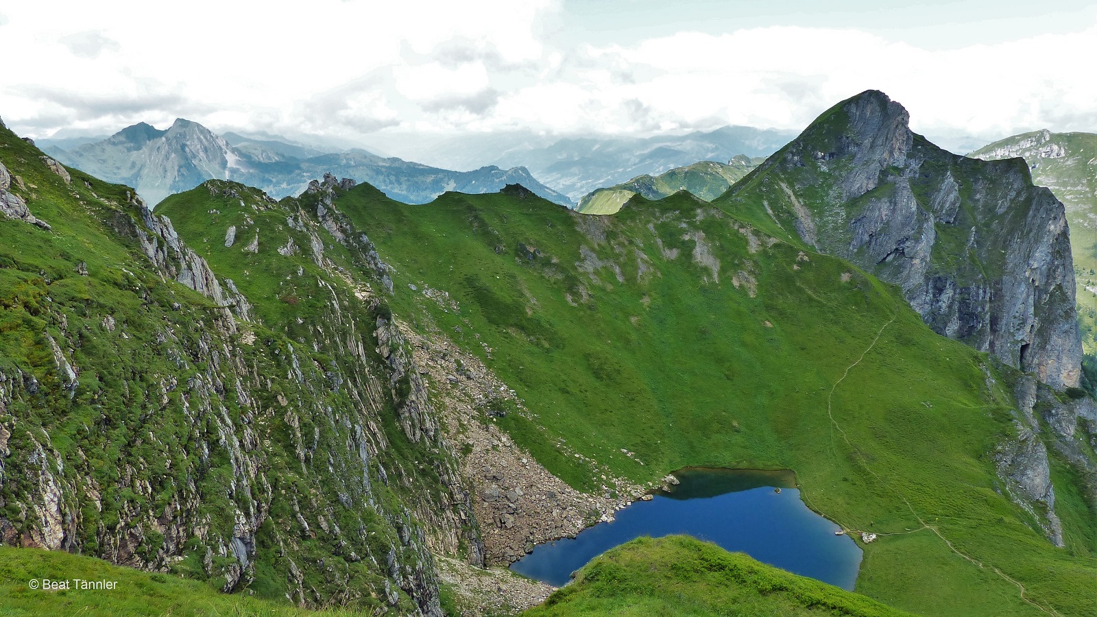 Von da in grossem Bogen weiter quer über die Alpwiesen hinauf bis zum Tiefenbach See. Wir werden auf dem Weg mit grossen und aromatischen Heidelbeeren belohnt, eine kleine, aber willkommene Zwischenverpflegung.