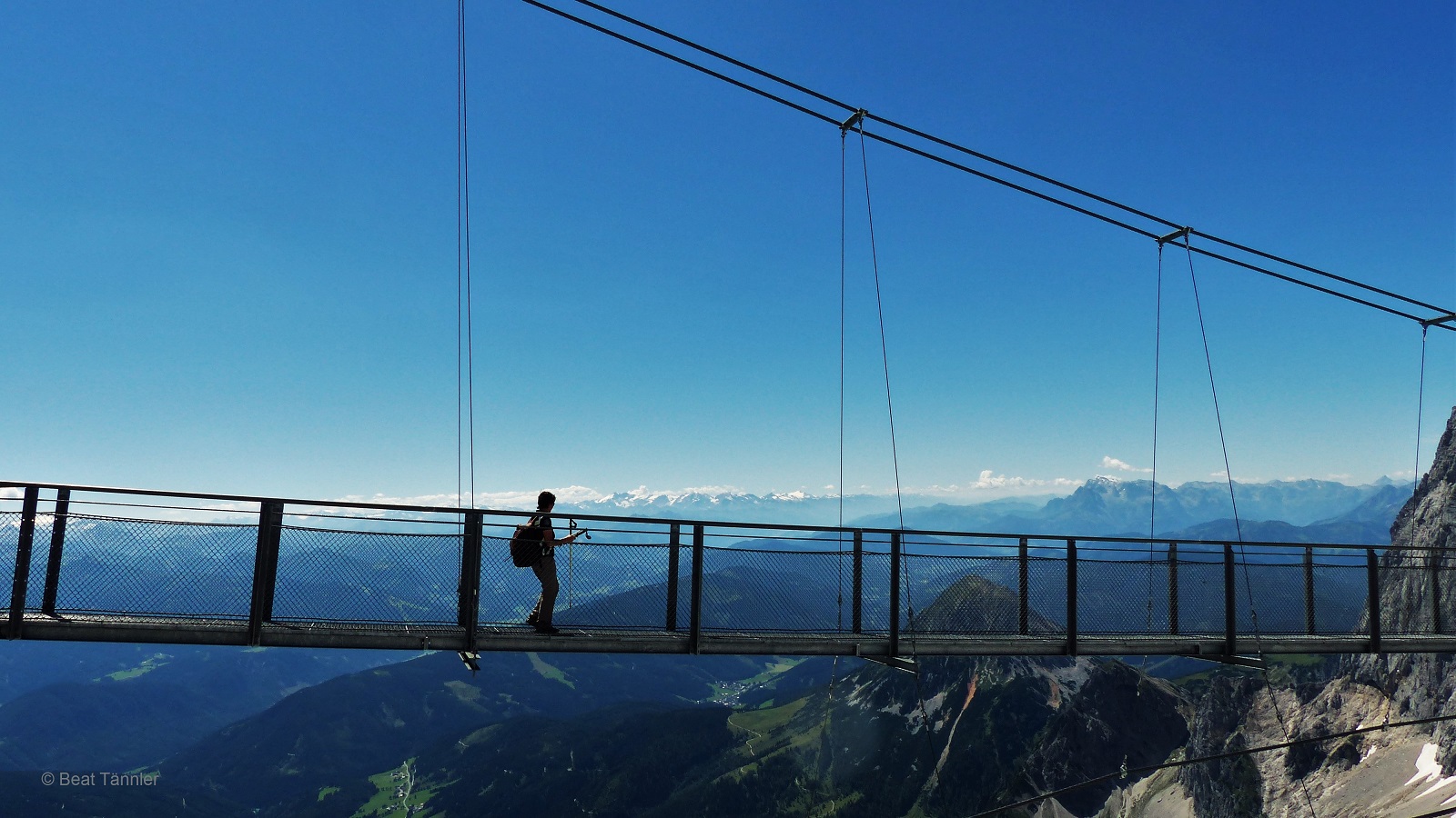 Wandern ist lustig und deshalb kehren wir am Ende nicht um, sondern schustern weiter, hoch zu der Himmelsschaukel, die wir gestern Abend entdeckt haben. Die Schaukel hängt an Kugellagern und, einmal in Bewegung, pendelt sie sehr lange weiter.