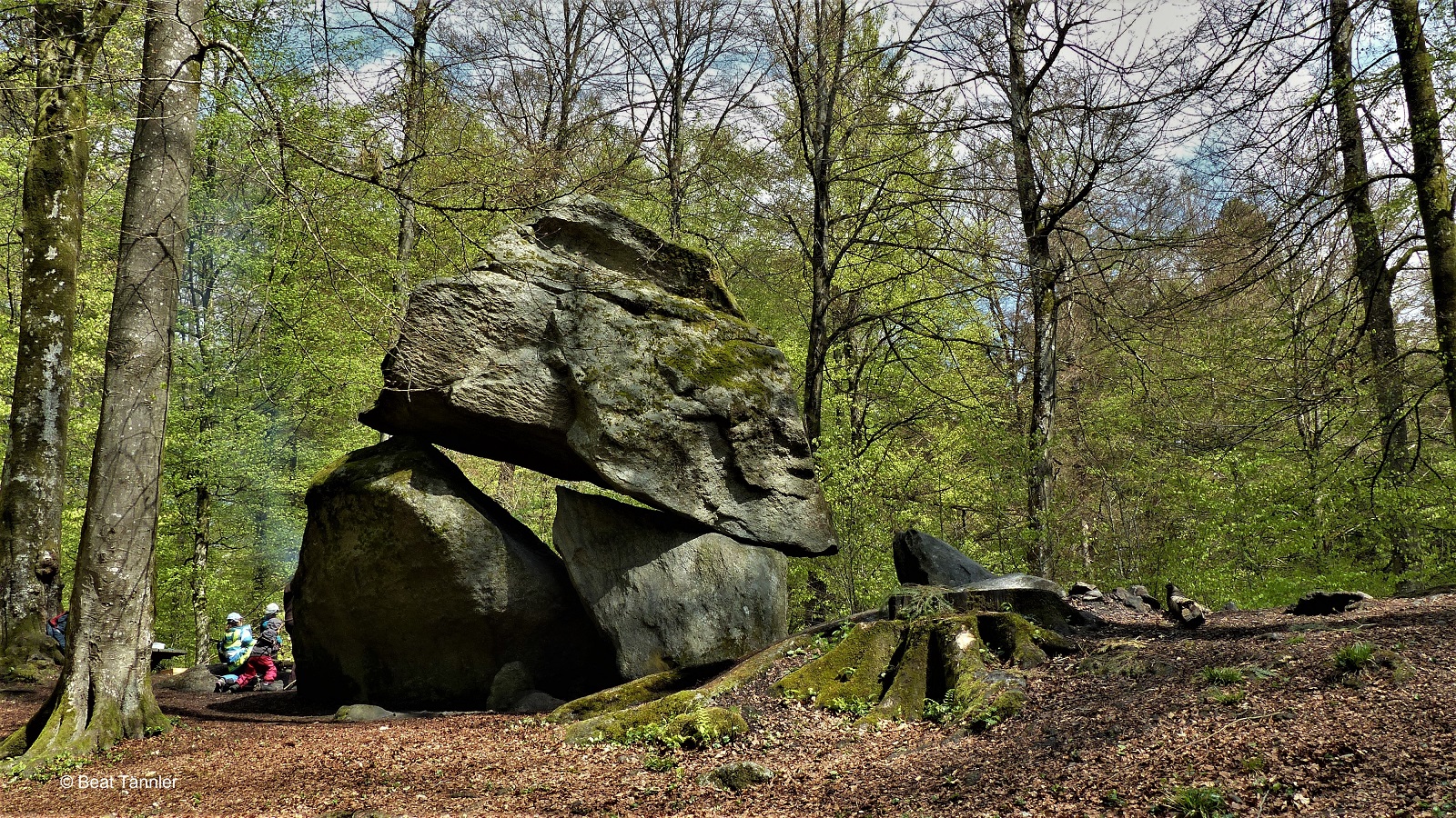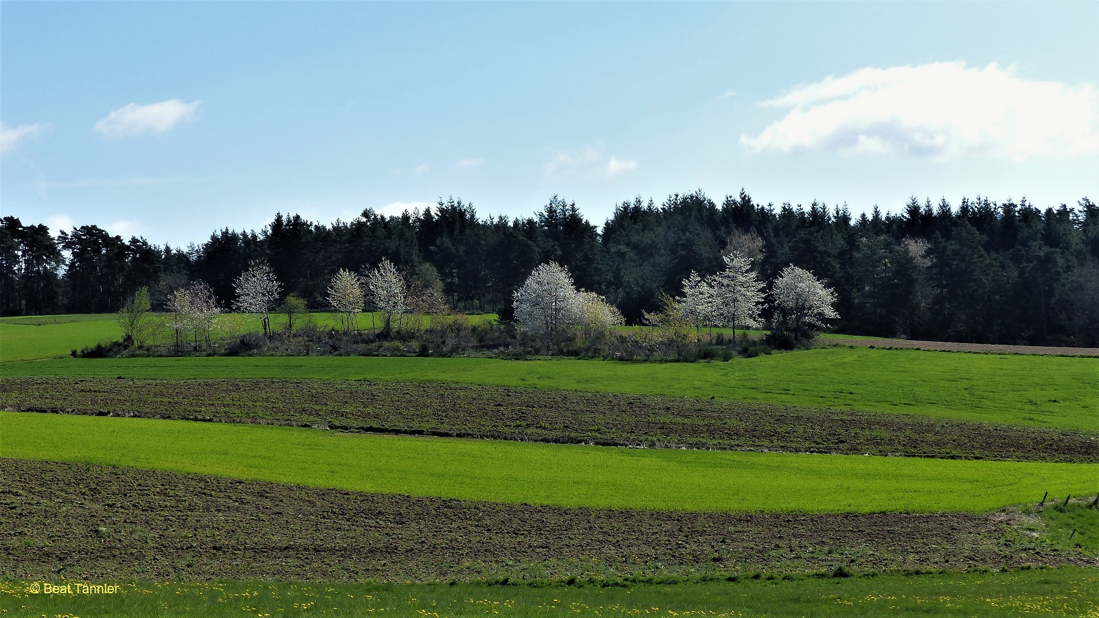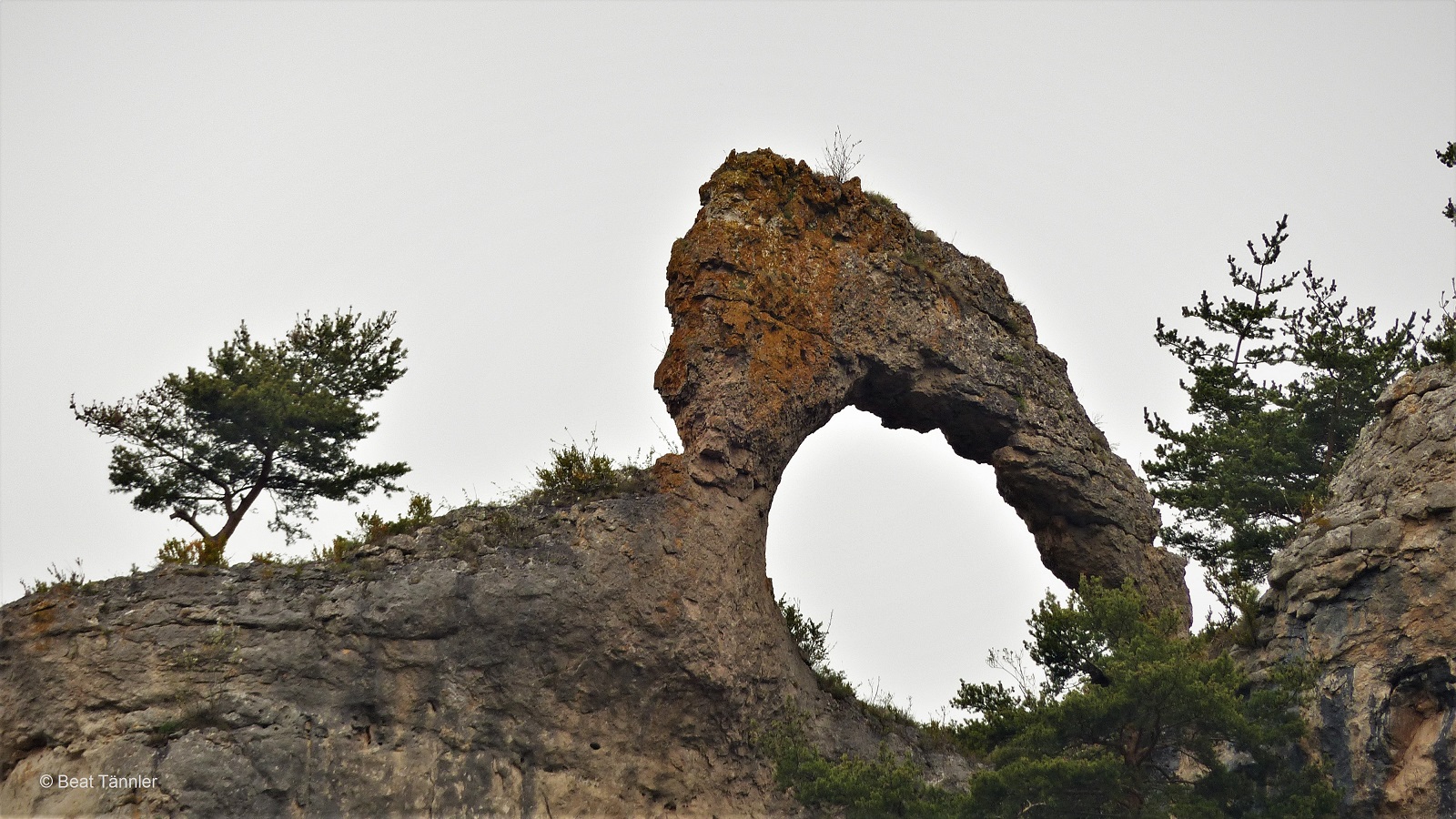 Es ist sehr regnerisch, doch wir nutzen eine Wolkenlücke und spazieren auf der Trasse der ehemaligen Vizinalbahn (Eisenbahn zur Erschliessung des ländlichen Raums) hinaus zur Himmelsleiter.