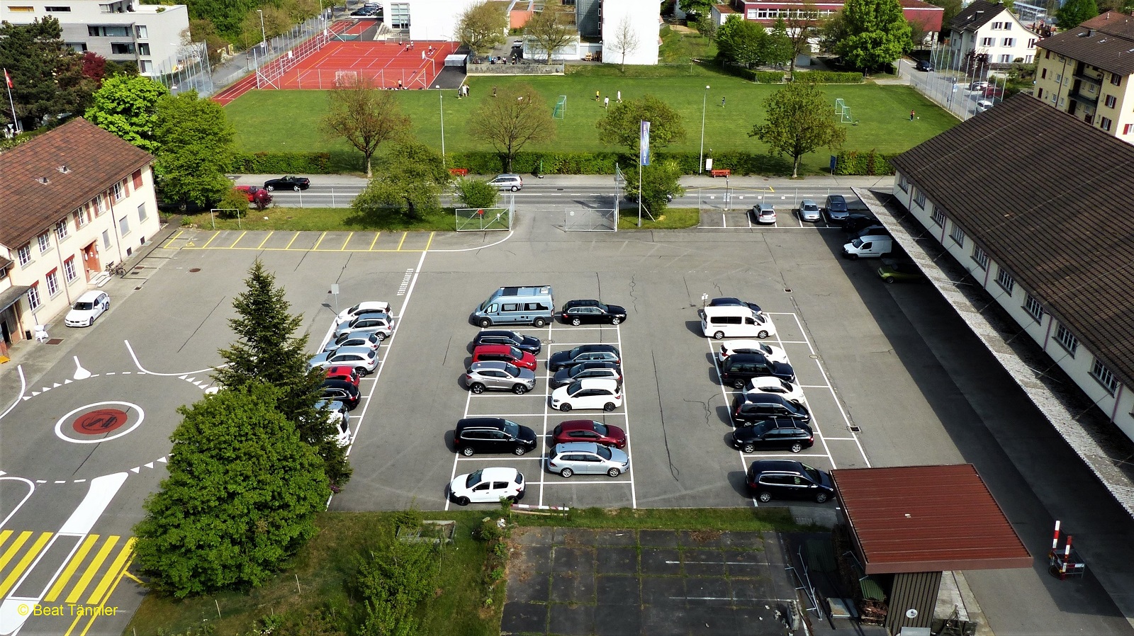 Über Nacht bleiben wir, wie viele Biker auch, auf einem der grossen, ruhigen Parkplätze.