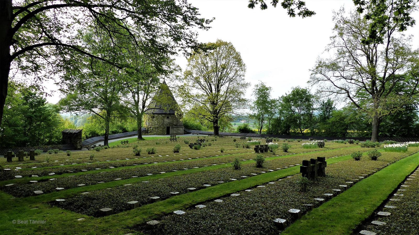 Wir spazieren über den gepflegten Friedhof und uns wird einmal mehr vor Augen geführt, wie viele Menschen im zweiten Weltkrieg sinnlos ihr Leben verloren haben.
