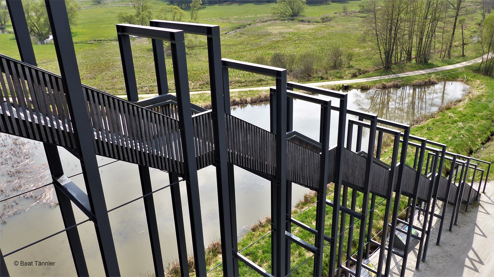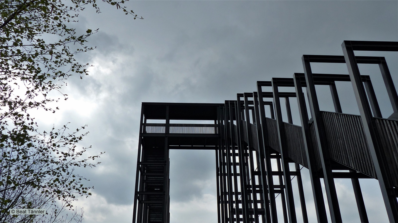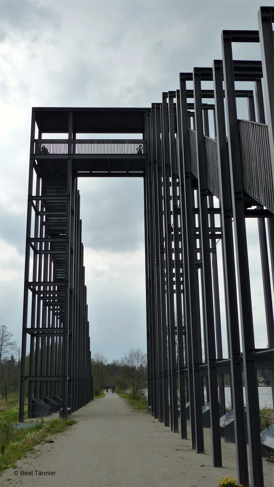Schon von weitem sieht man den markanten Stahlbau, der über dem Rad- und Wanderweg steht.
