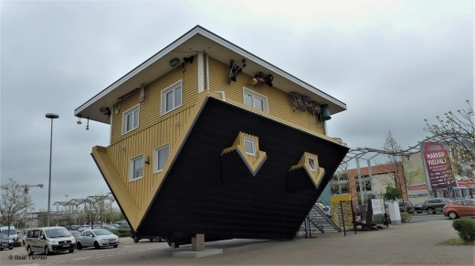 In Günthersdorf, ehemals DDR, haben sie die Wende vom Kommunismus zur freien Marktwirtschaft wörtlich genommen. Da steht nicht nur ein gigantisches Einkaufszentrum, nein, sondern auch ein ganzes Einfamilienhaus Kopf.