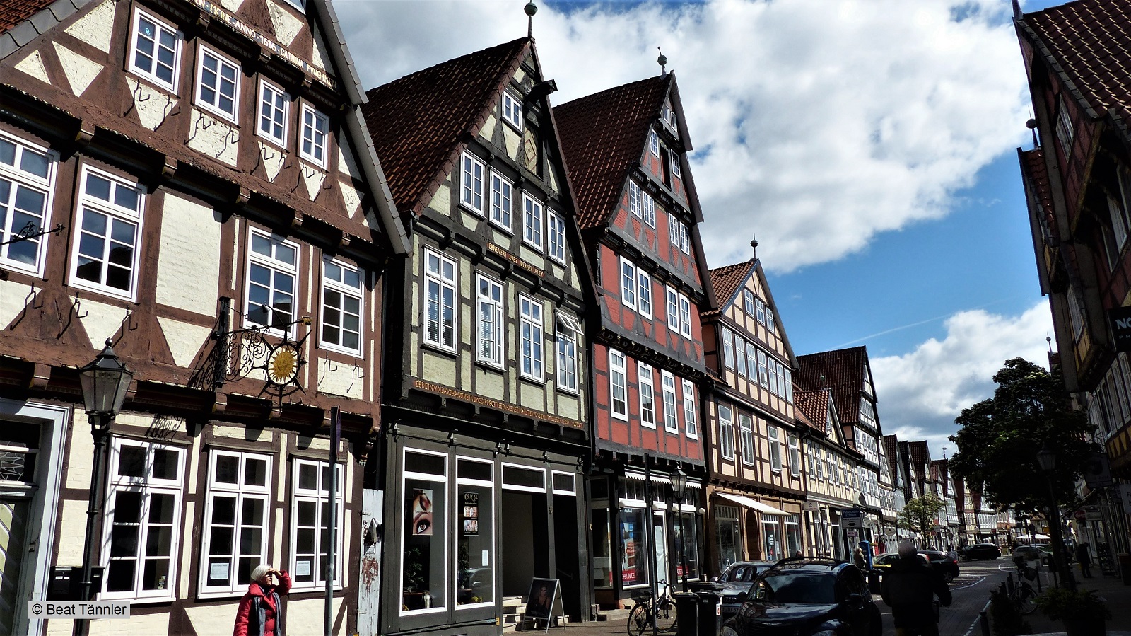 In Celle stehen wir und nicht die Häuser beinahe auf dem Kopf.