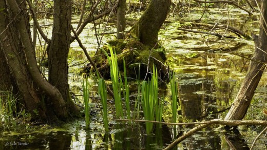 Daneben liegt ein schattiges Moor, das anderen Tieren Lebensraum bietet.