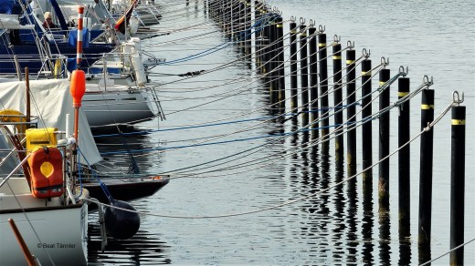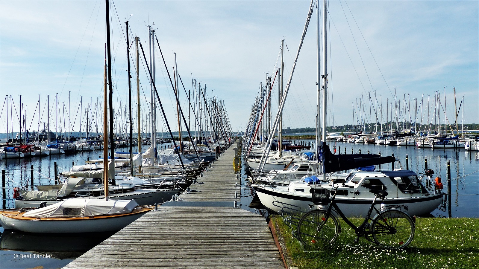 Nein, nein, das sind nicht die Speichen des Fahrrades, das sind die Pfähle, an denen die Segelschiffe vertäut sind.